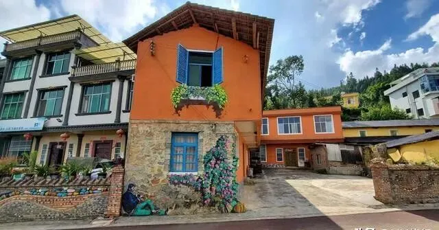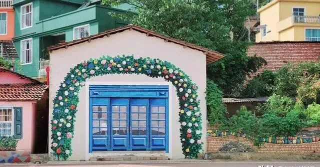 每家每户的墙上 , 都画满了彩绘!