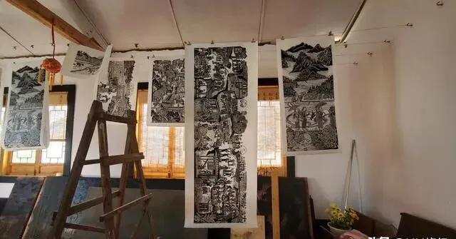 宽敞的教室 , 雕刻精细的画板 , 墙上挂着的版画作品 , 那细节 , 那构图 , 完全不像是农民做的!