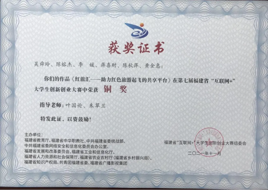 咱们专业的老师清一色“双师型”教师,既能在课堂上把复杂知识讲得生动有趣,又能带着你对接真实文旅项目,更厉害的是,老师们都“一身绝活”,带领着同学们在各类大赛中 “收割”各种荣誉:福建省“互联网+”创新创业大赛金奖、中国国际大学生创新大赛铜奖、福建省职业院校技能大赛纷至沓来。跟着这样的专业老师,不仅能学好专业技能,还能积累竞赛经验,为未来闯荡福建文旅圈加分加码!