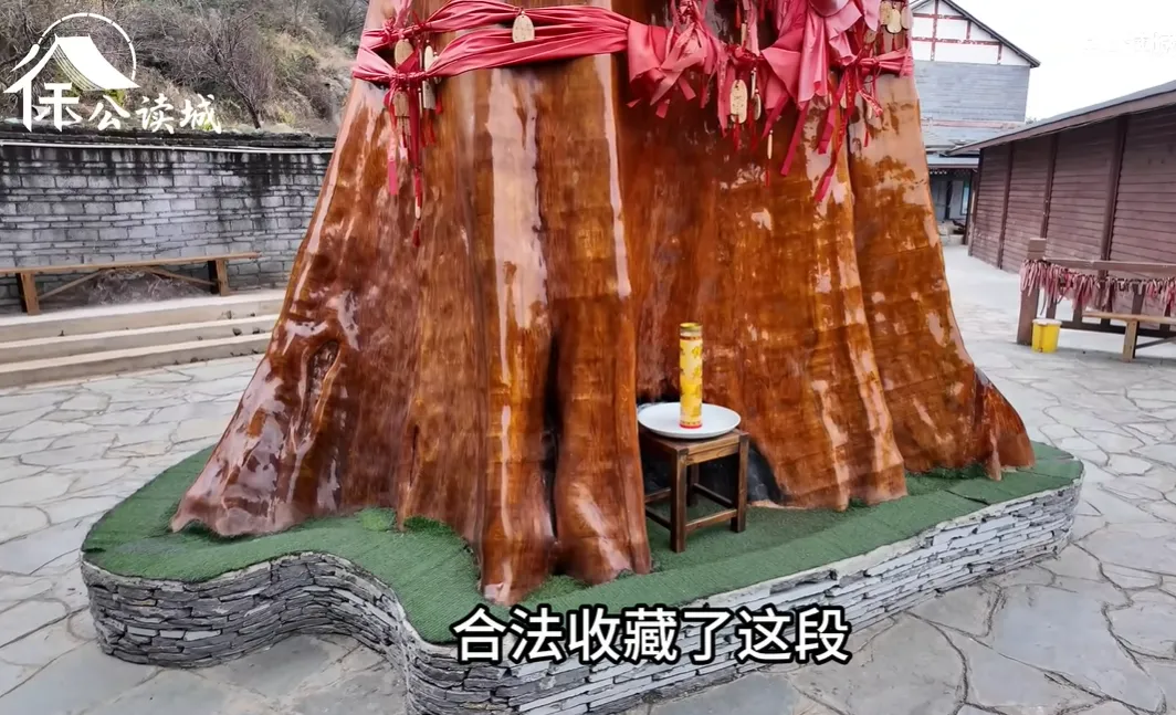 这里边有一棵4300年的巨型金丝楠木,2013年被雷劈了一次,把这棵树直接烧死了,于是就有一位富商斥资1700万元,合法收藏了这段,被火烧过的金丝楠木,并挪到贵阳的这个金丝楠文博园里,供游客免费参观。