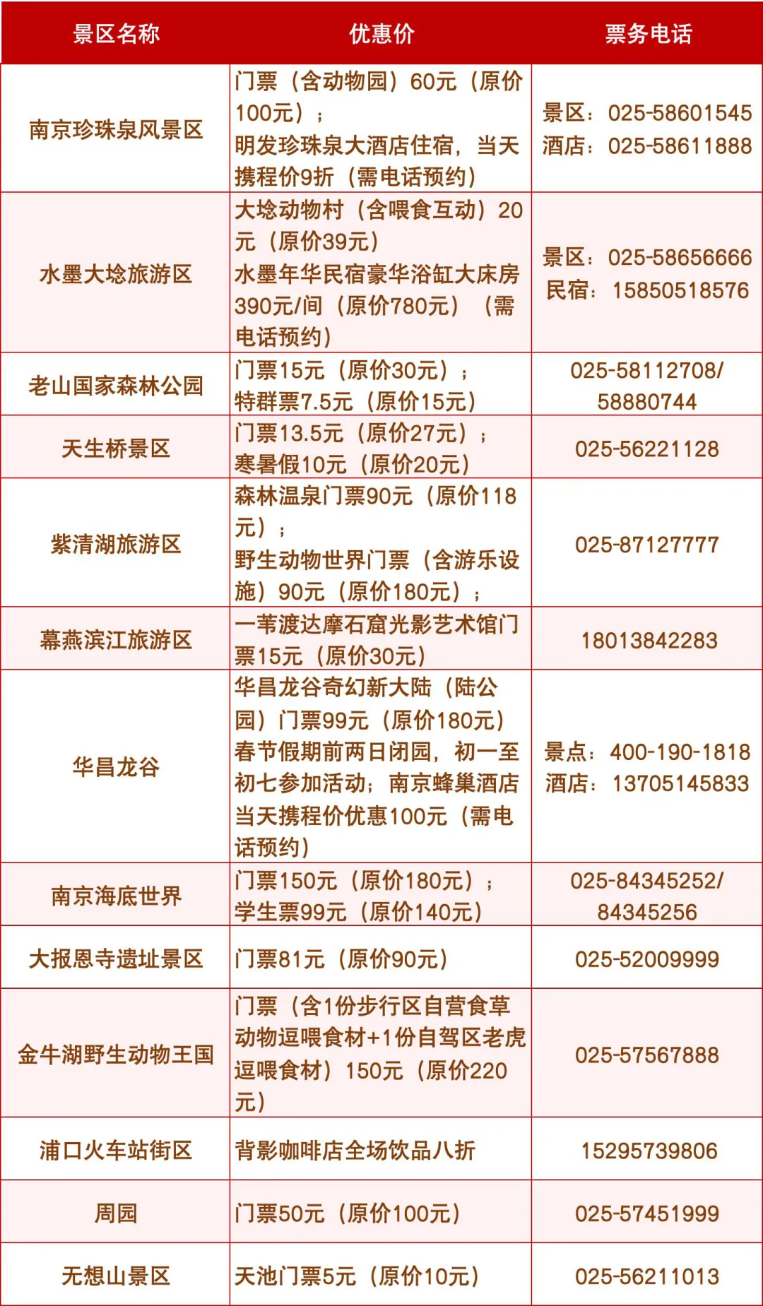 2026年2月15日—23日(2026年春节期间),旅客通过铁路、民航抵达南京后十日内,凭本人有效身份证件及抵达南京的火车票(南京站、南京南站、江宁站、江宁西站、仙林站、溧水站)或登机牌信息,在相关景区(点)现场购票,可以享受包括门票、旅游项目、住宿等特别优惠。