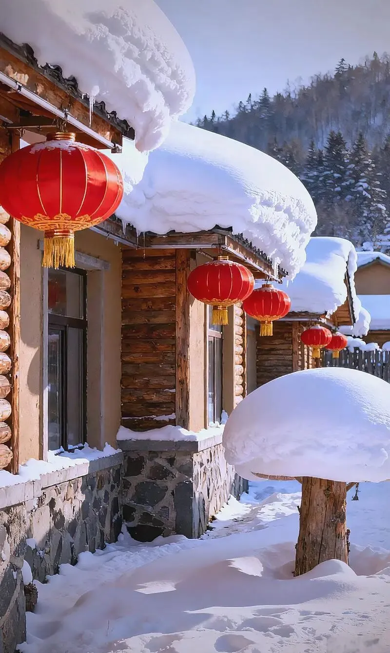 拍雪蘑菇看点,清晨和傍晚出片,天蓝一压屋檐,灯一亮,雪顶像奶油,别上手拍,手一热蘑菇就塌一圈。