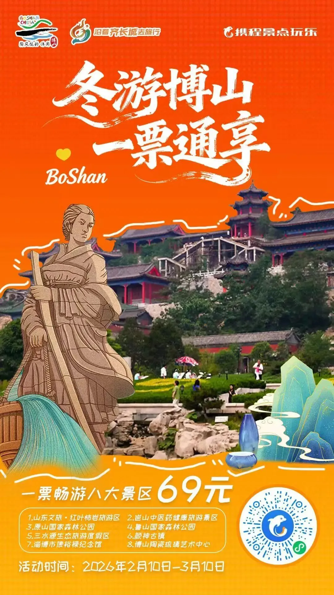 策马扬鞭,共赴“大文旅”发展格局。马年新春之际,博山景区产业联盟联合山东文旅·红叶柿岩旅游区、岜山中医药健康旅游景区岜山中医药文化馆、博山陶瓷琉璃艺术中心、原山国家森林公园、淄博市焦裕禄纪念馆、颜神古镇、鲁山国家森林公园、三水源生态旅游度假区共同推出“冬游博山·一票通享”活动,仅需69元即可一票畅游八大景区。即日起至3月10日,游客可通过抖音、美团、携程旅行APP搜索“山东文旅·红叶柿岩旅游区”进行购票,联票使用有效期为2026年2月10日至3月10日,数量有限,先到先得。博山景区产业联盟邀您沿齐长城探寻博山的山水与街巷,细品地道博山年味,共赴一场冬日之旅。