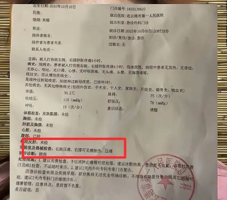 可老板娘根本不听,还越说越激动。还用手肘攻击小贾弟弟致其软组织挫伤(医院确诊)。