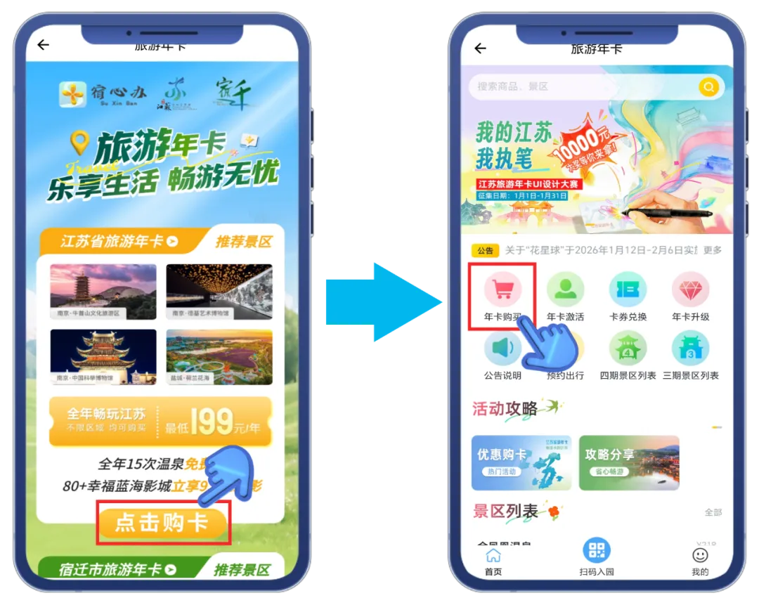 最近是不是发现,江苏省旅游年卡和宿迁市旅游年卡的购买入口“不见了”?别担心,不是入口消失,而是我们贴心整合啦!