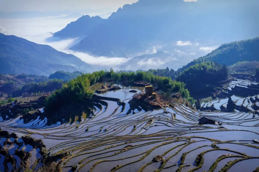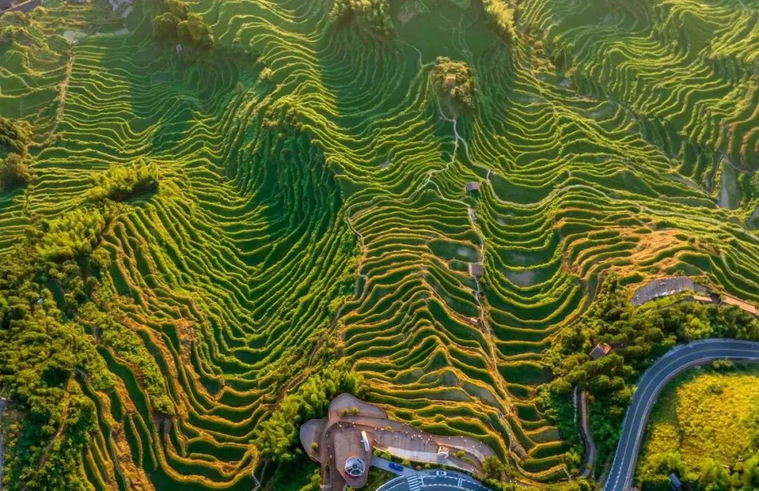 【云和梯田】景区。云和梯田最早开发于唐初,兴于元、明,已有 1000 多年历史,海拔跨度为 200 米~1400 多米,垂直高度 1200 多米,跨越高山、丘陵、谷地三个地质景观带,具有体量大、震撼力强、四季景观独特等特点,是华东地区最大的梯田群,被称为“中国最美梯田”。景区内拥有梯田、云海、山村、竹海、溪流、瀑布、雾凇等自然景观。