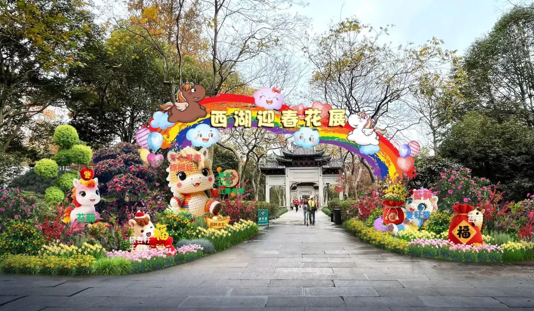 在马年新春之际,钱王祠以“陌上花开迎春归”为迎春花展品牌,以“一马当先万象新”为主题,设计新颖、精巧的室外园林小品, 加上喜庆丰富的环境布置,结合室内精品花卉展陈,室外广场融入商业业态及互动活动,全方位打造一场可赏、可玩、可吃、可买的多层次体验新春游园会。