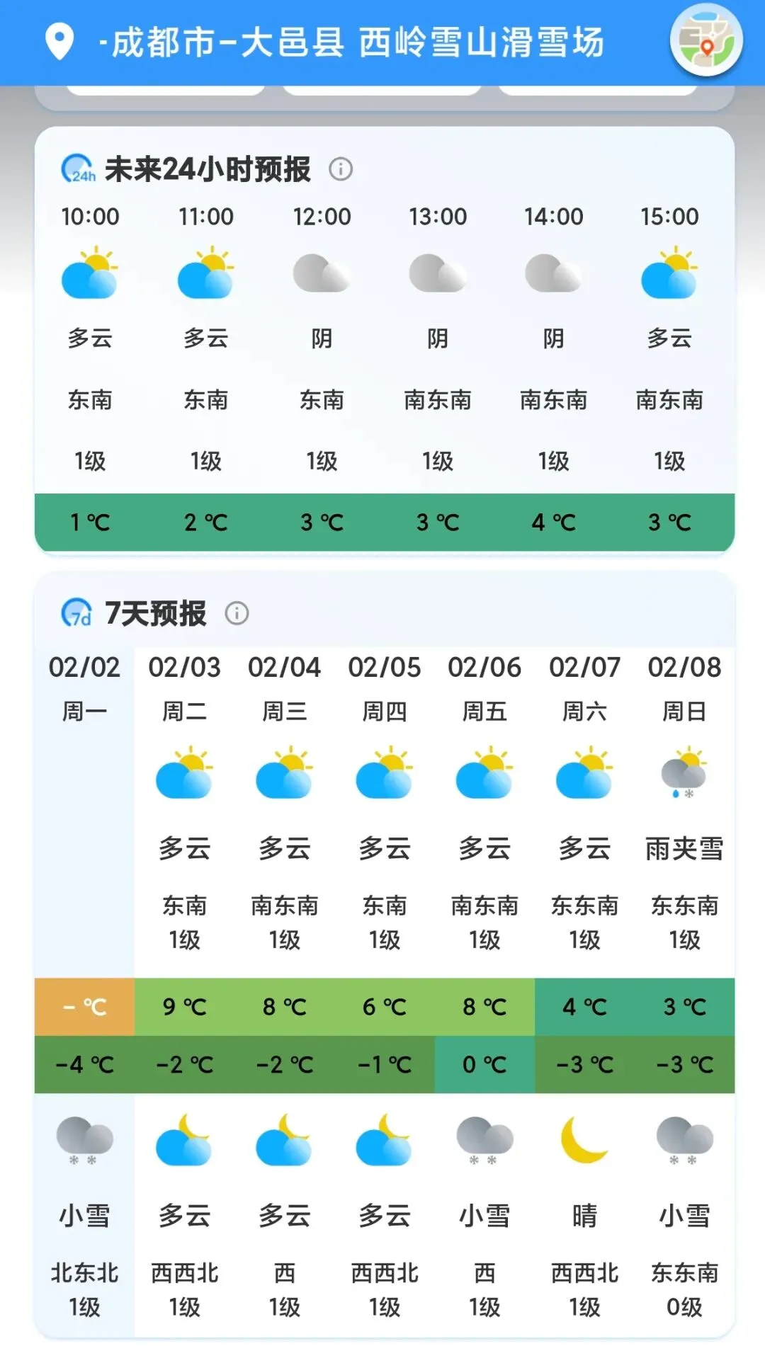 西岭雪山景区2月3日(周二)气象预报01
