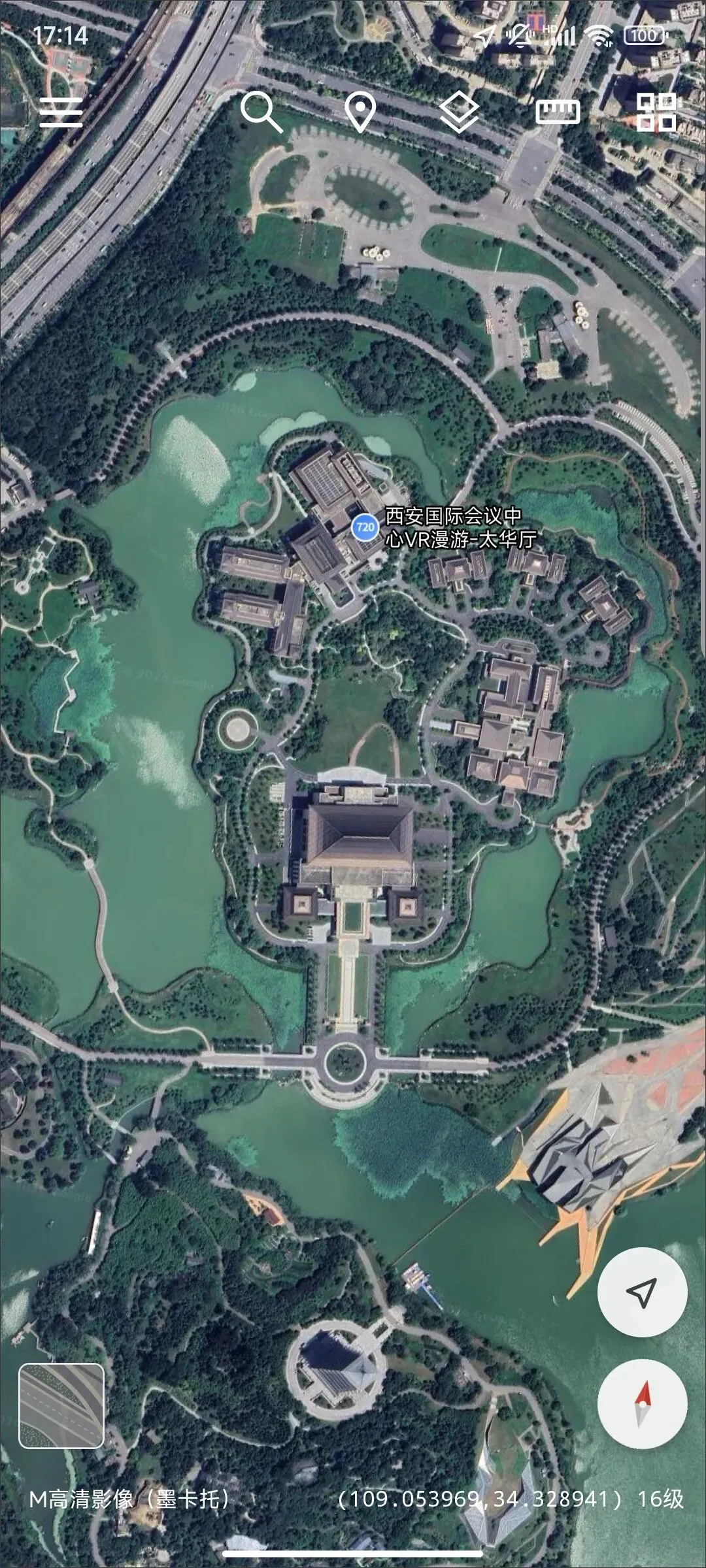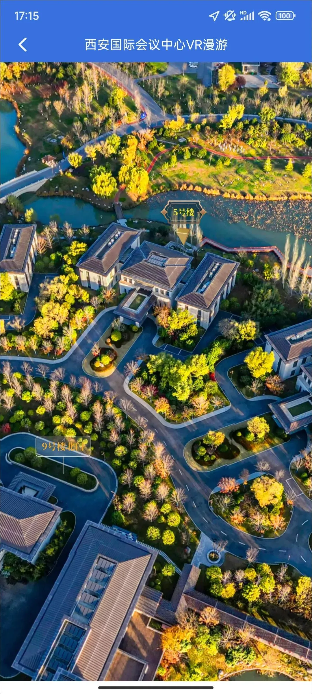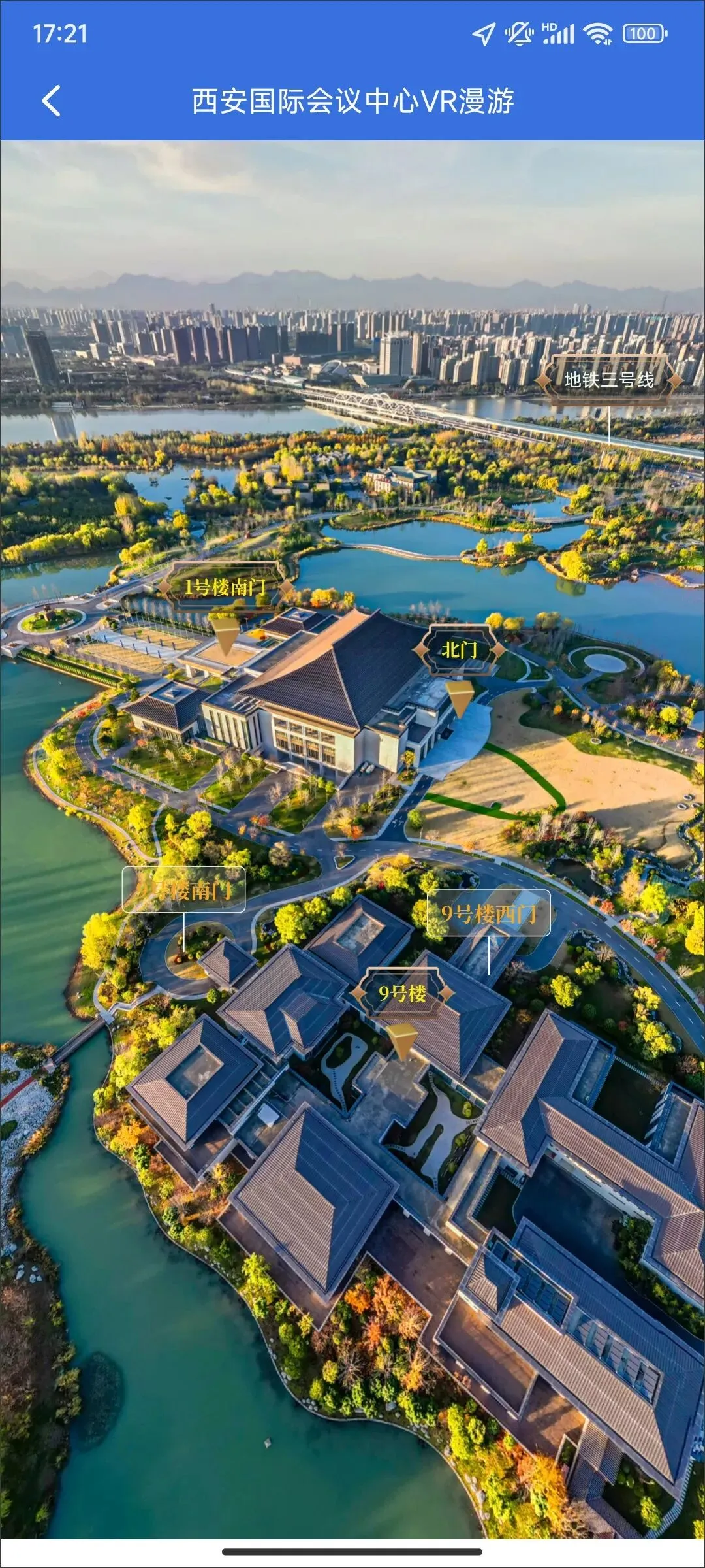 在微图App中搜索“西安国际会议中心”定位,然后单击显示的蓝色720云图标,即可查看全景。