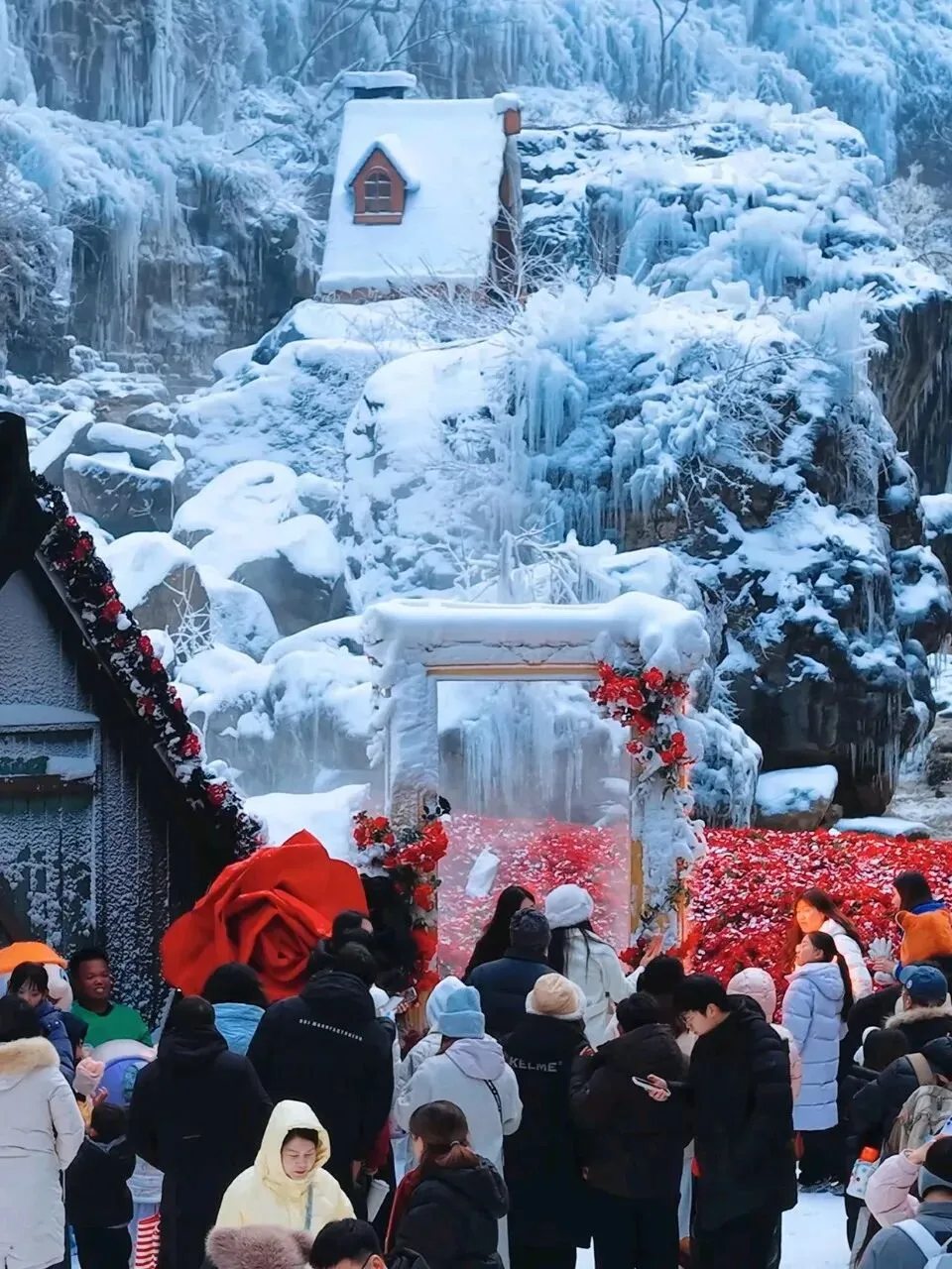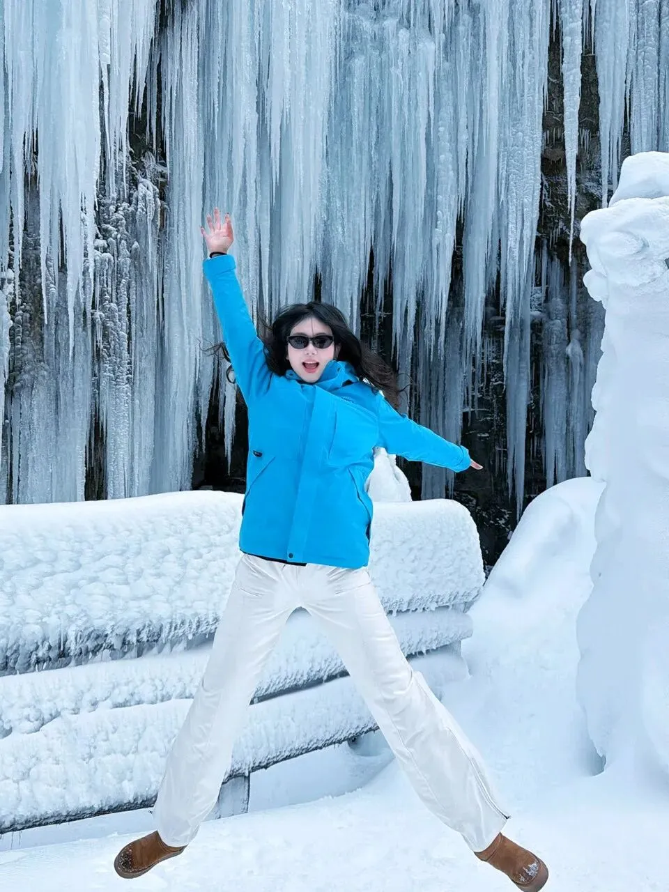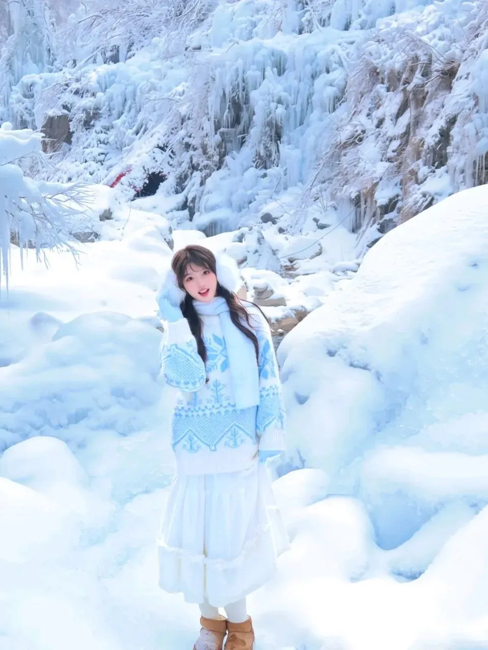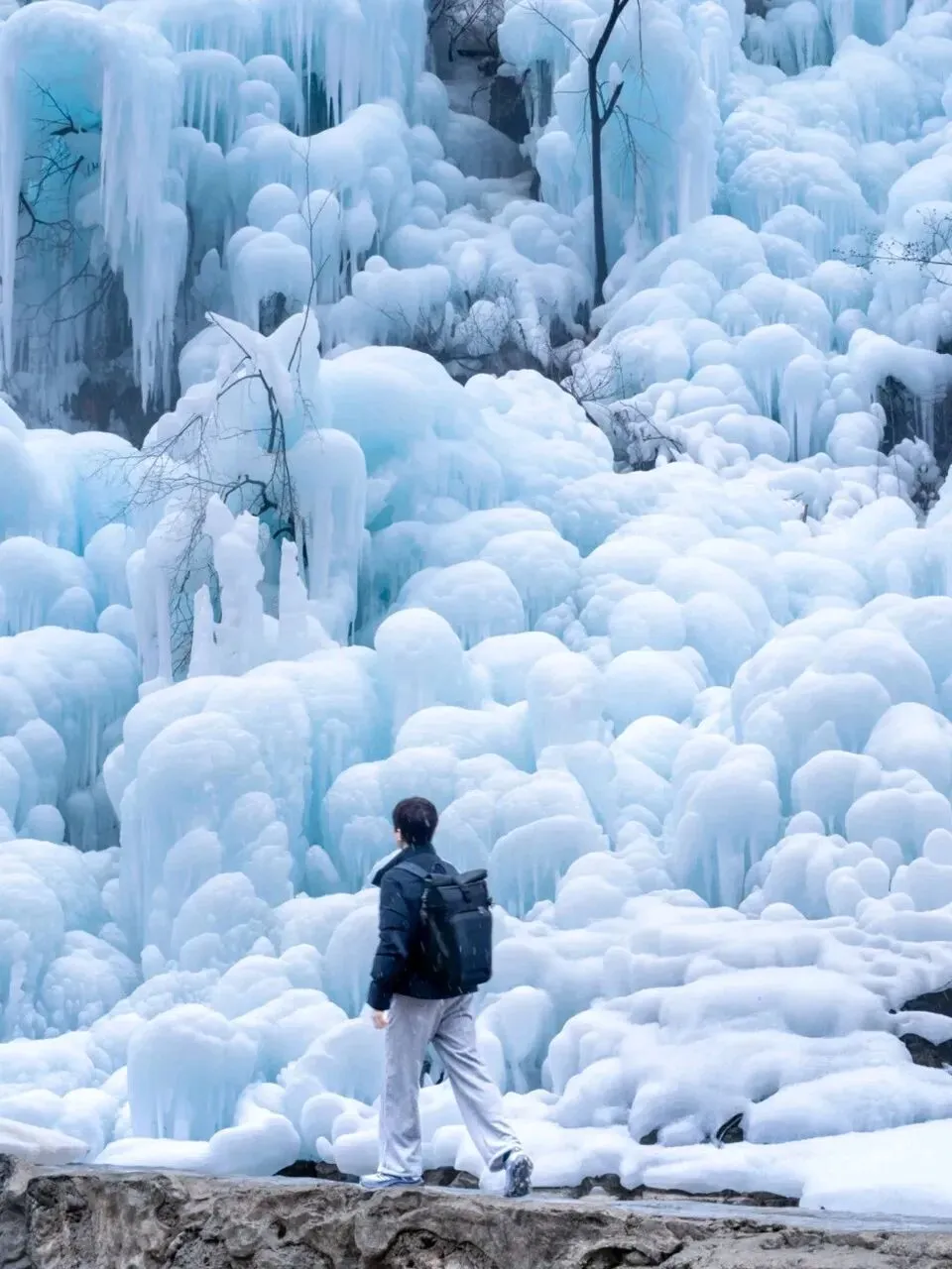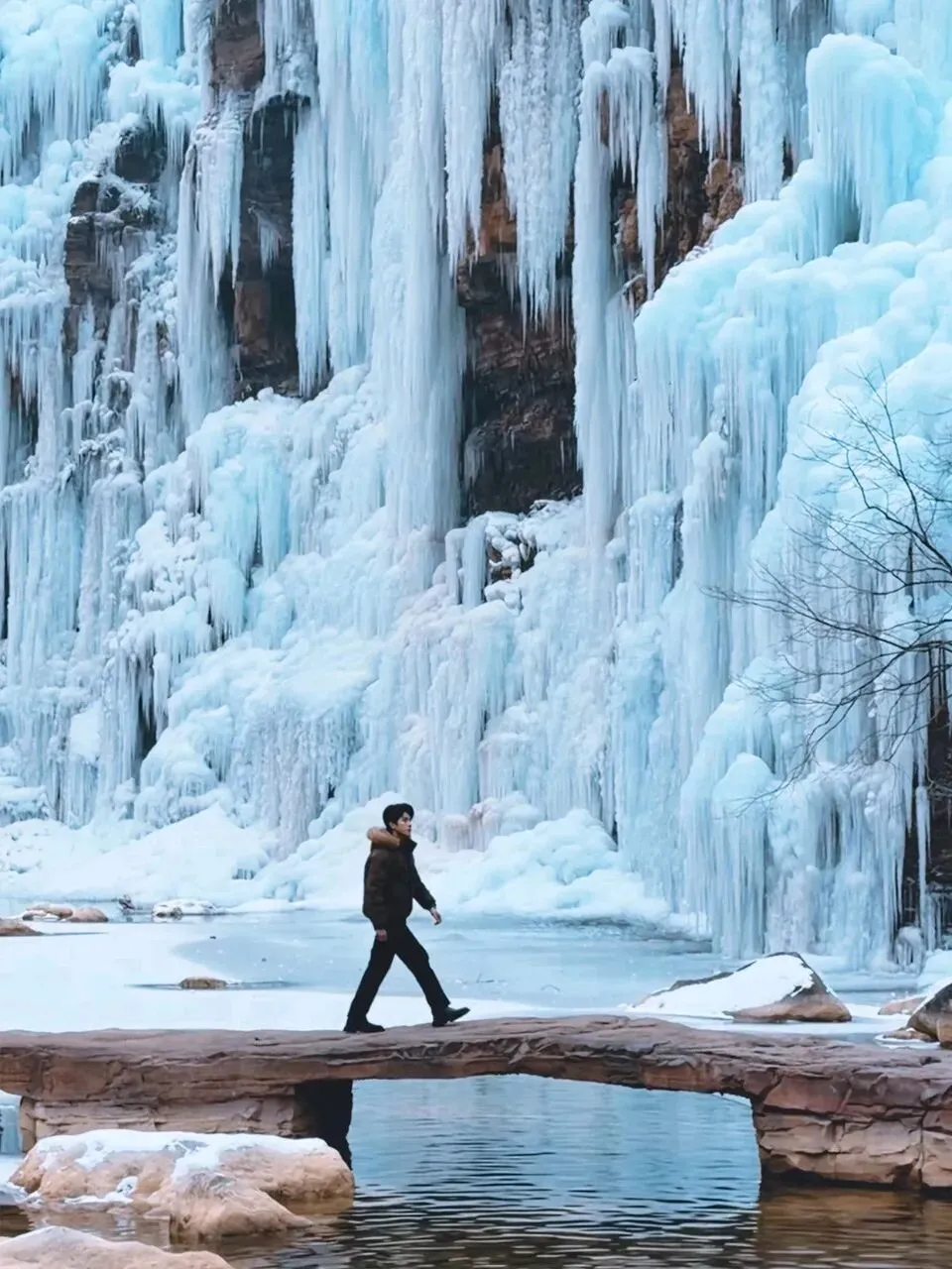 ✅ 出片小技巧:穿红色、黄色、蓝色等亮色系衣服,在纯白、淡蓝色冰挂的映衬下,瞬间成为画面焦点;站在桥上回望全景,能拍出冰谷的纵深感,高级又出片🌟