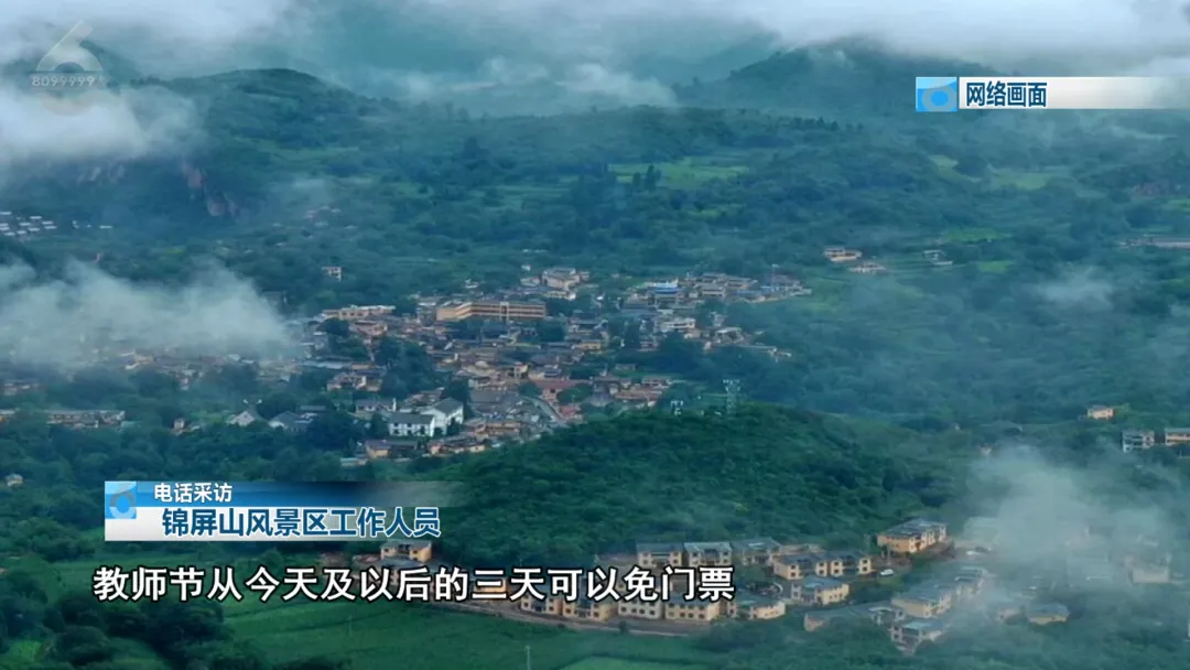 锦屏山风景区工作人员:“教师节从今天及以后的三天可以免门票,同行可以带两个陪同,买半票。”