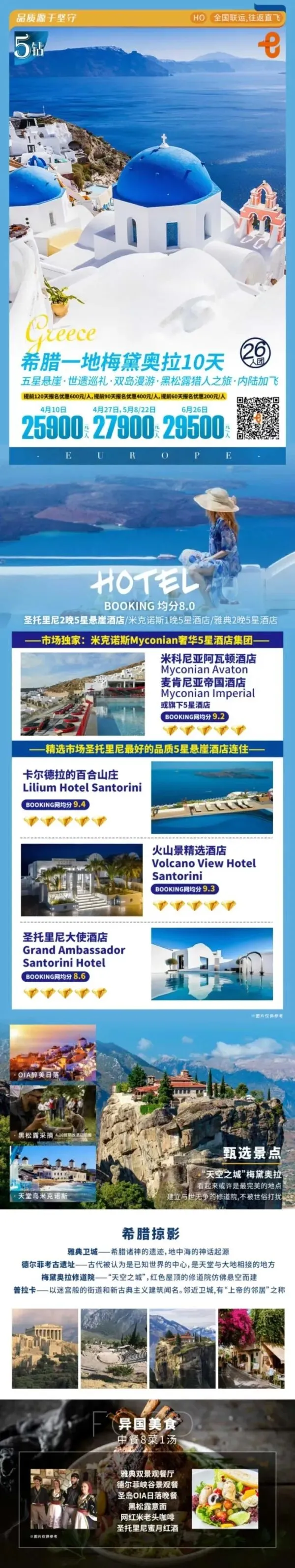 ✅2晚5星悬崖酒店/2晚5星雅典酒店/1晚5星米岛酒店