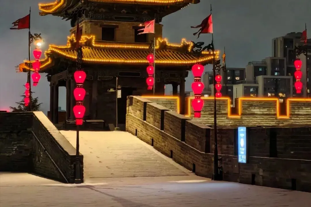 青灰城墙下,灯笼点亮十三朝的风。