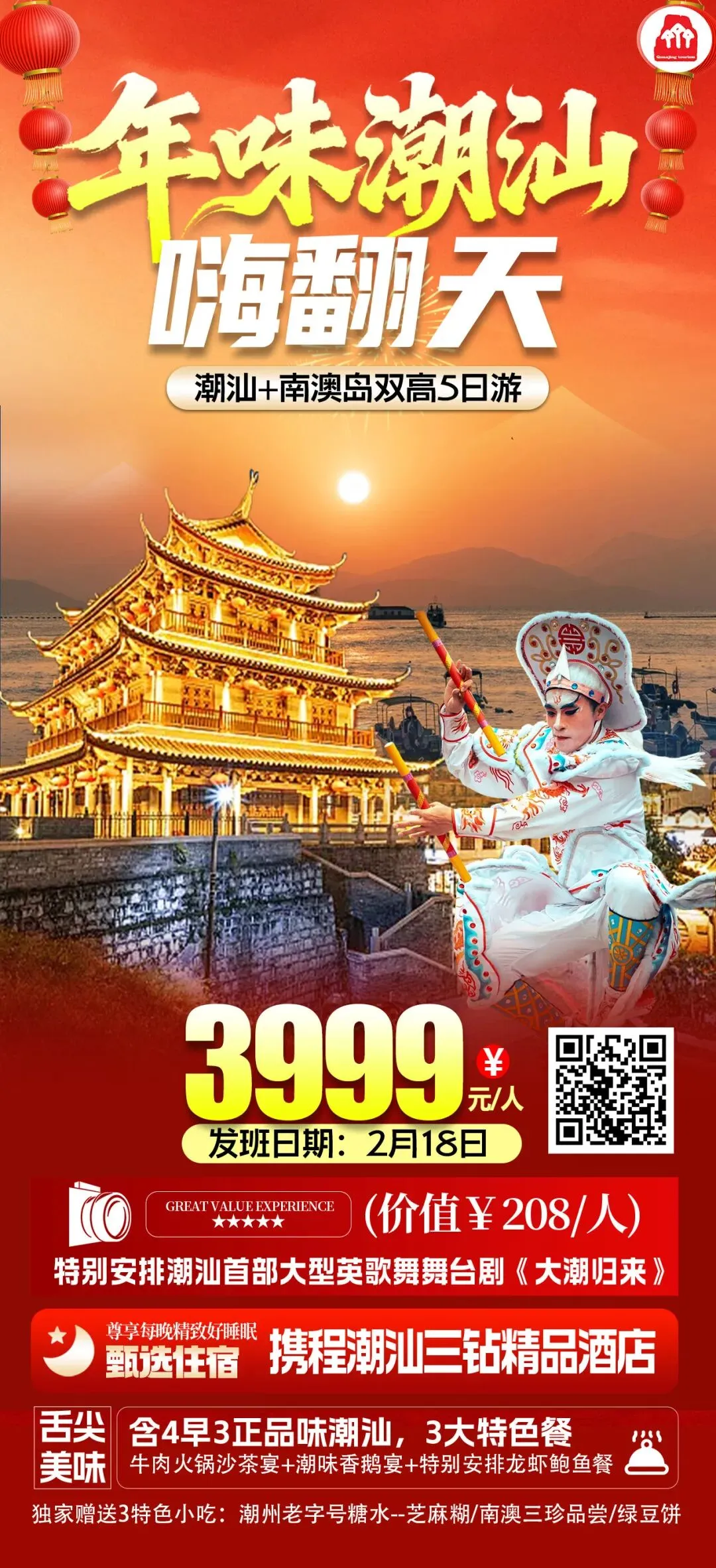 老厝门楼贴金漆楹联,嵌瓷龙凤在日光下粲然欲飞。街边大鼎翻滚着卤鹅的琥珀色江湖,一碟蘸蒜泥醋是潮汕人舌尖的辽阔。夜粥摊白糜温润,铺满鱼饭、生腌的璀璨星河——这一口鲜甜生猛,是向大海借来的胆魄。英歌舞鼓点震落木棉花,在古早的铿锵里,听见岭东永不冷却的人间烟火。