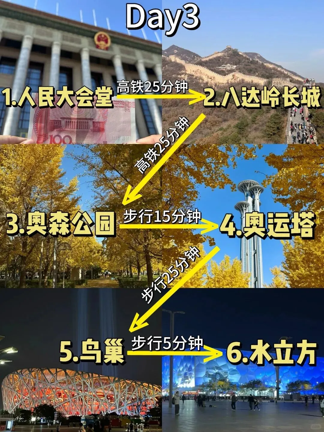 📅 DAY3:雄关壮阔·现代风情|人民大会堂→八达岭长城→奥林匹克公园→奥林匹克塔→鸟巢→水立方