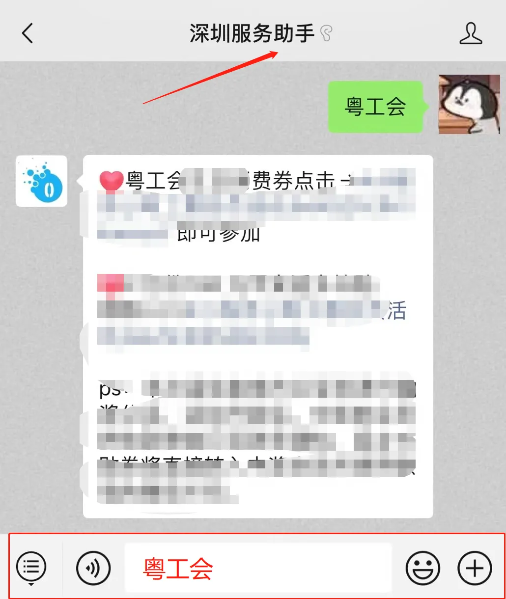 进入后台聊天框发送关键词“粤工会”