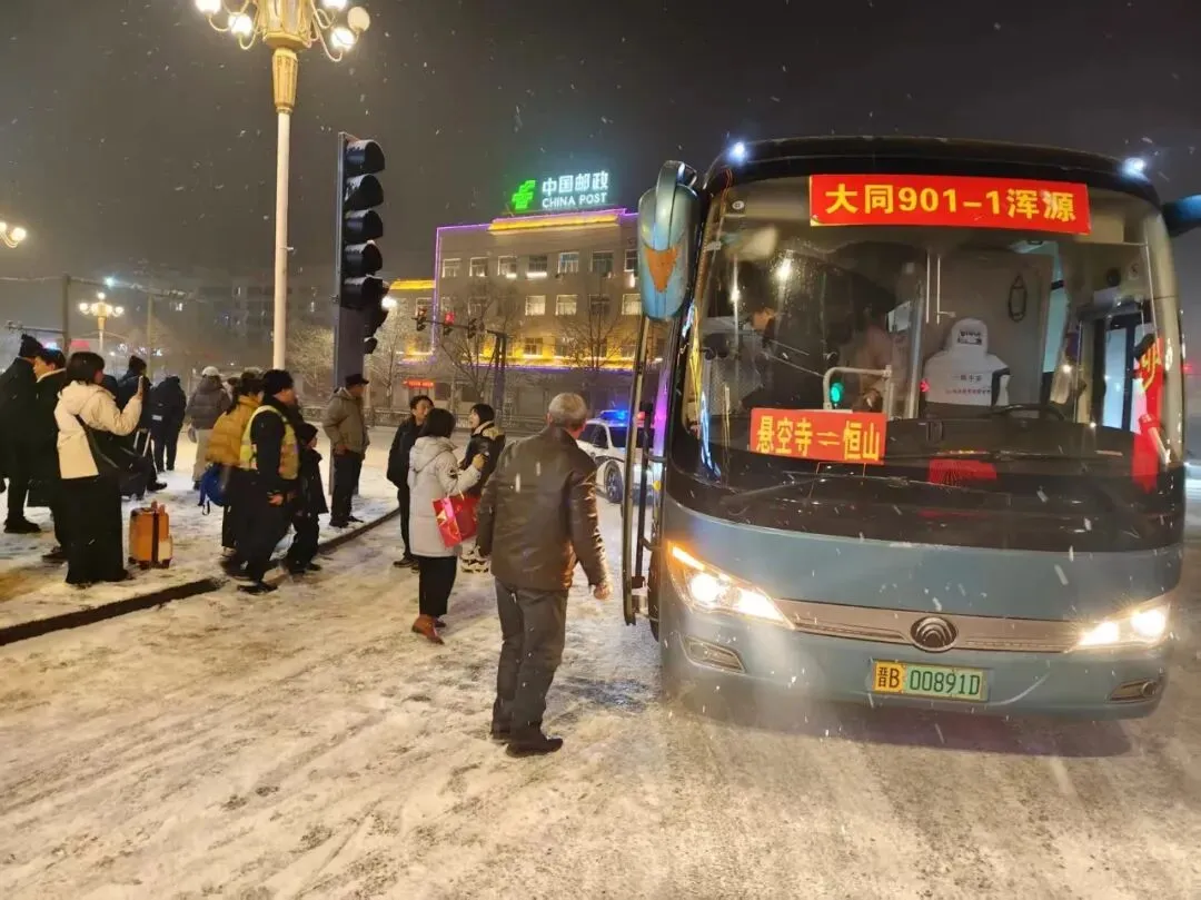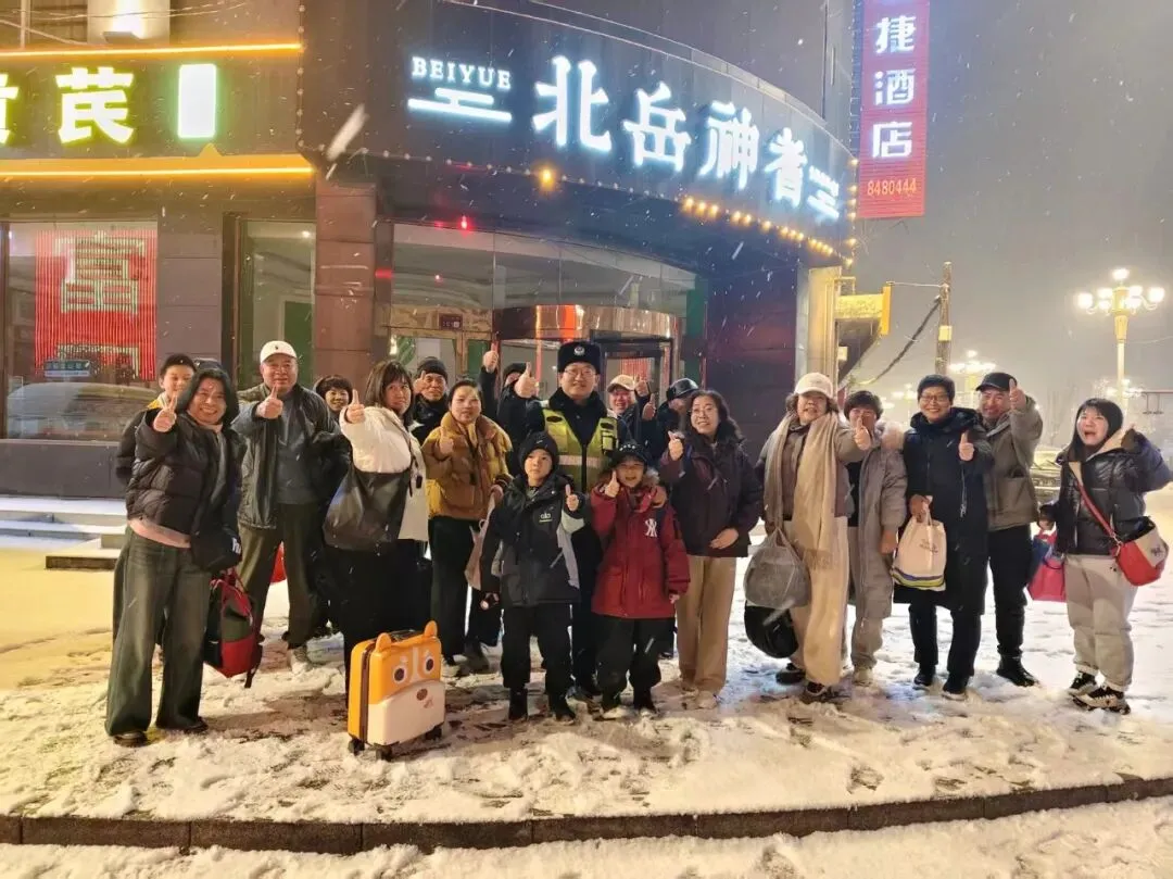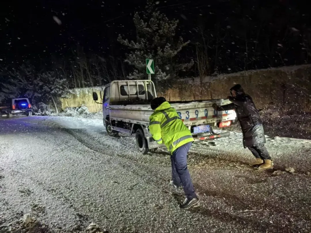 满载游客的旅游车辆雪夜被困山区,大同浑源交警暖心救援