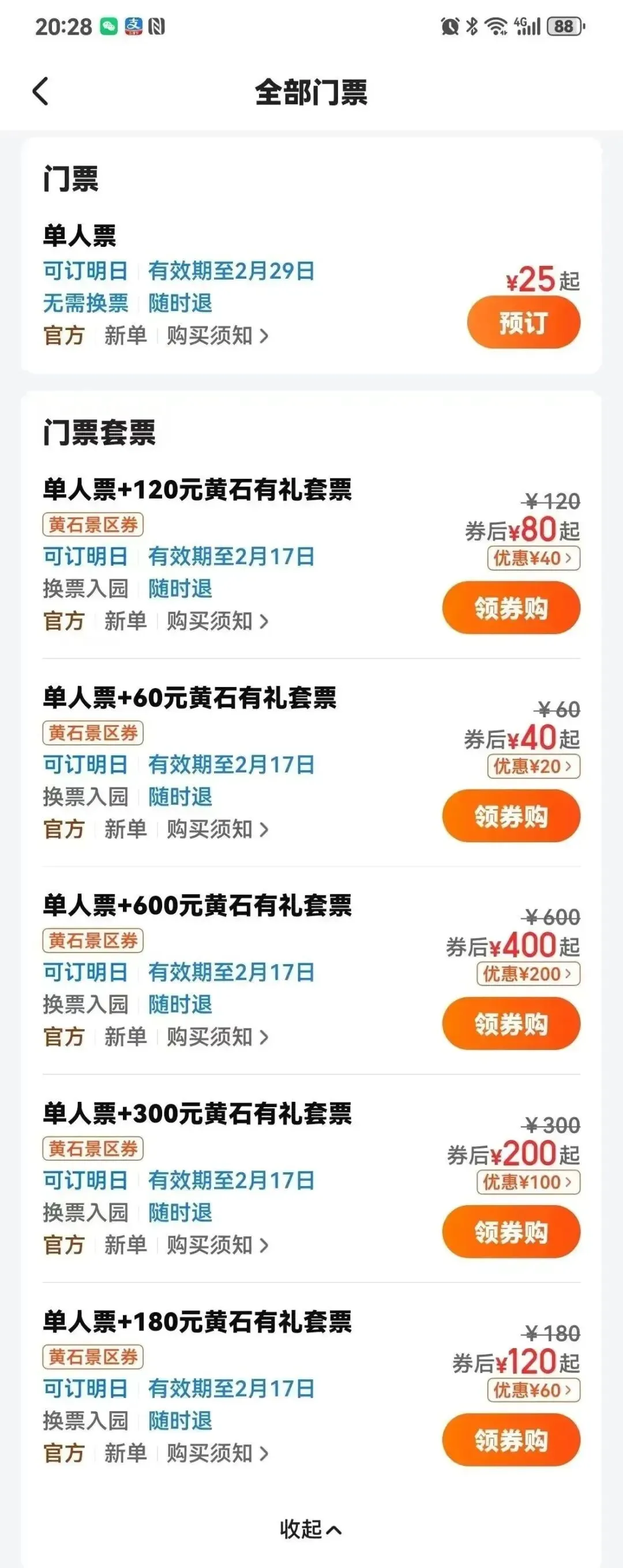 为了回馈客户,黄石文旅局联合西塞山景区发放了一批消费券,人人都可以领取,只需要在美团APP搜索“西塞山”,选择对应的套餐下单支付即可,消费券会自动满减,如下图: