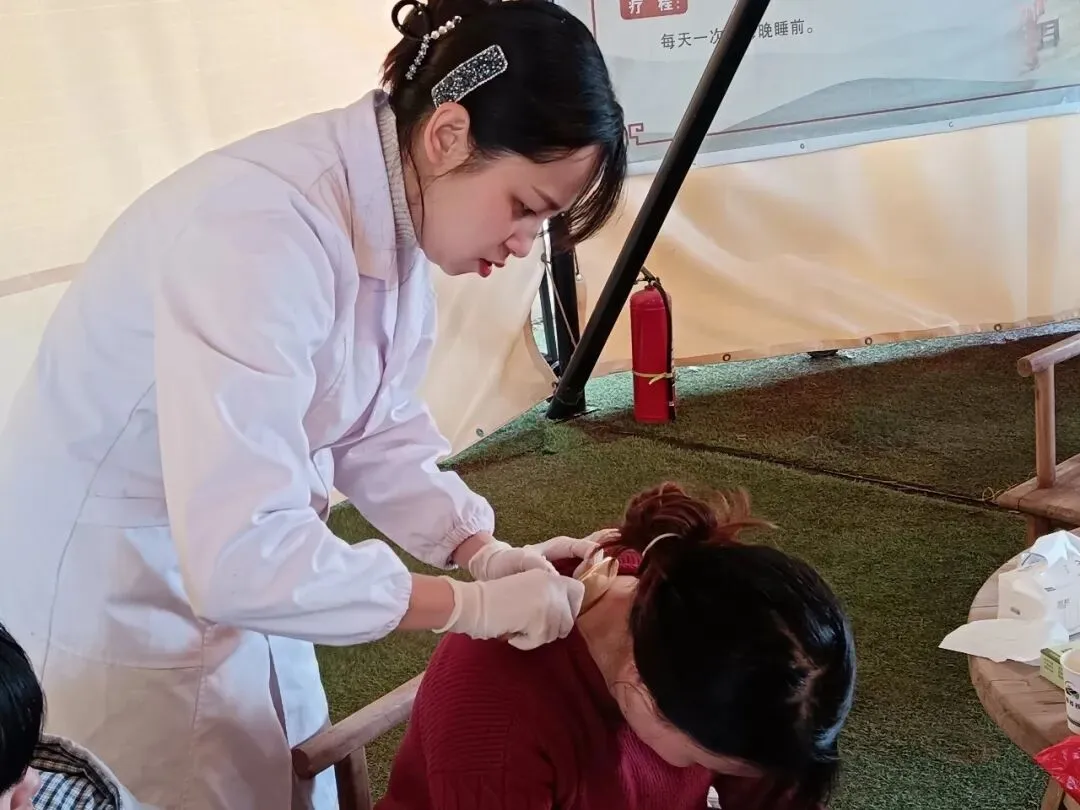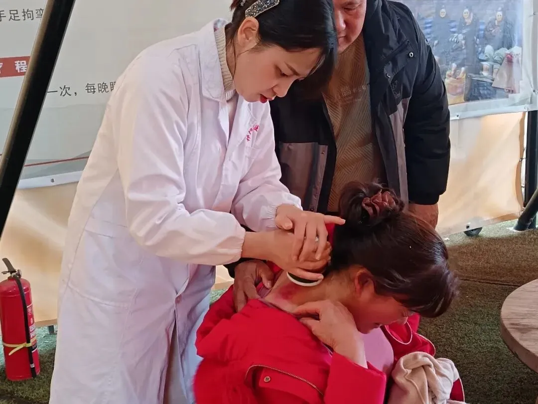 在中医药适宜技术体验区,针灸、拔罐、推拿、刮痧、耳穴压豆等中医特色疗法吸引了众多游客驻足体验,感受中医的独特魅力。团队专家们还结合现代医学理念,为居民解答睡眠障碍、颈肩腰腿痛、高血压等常见健康问题,并给出个性化调理建议。