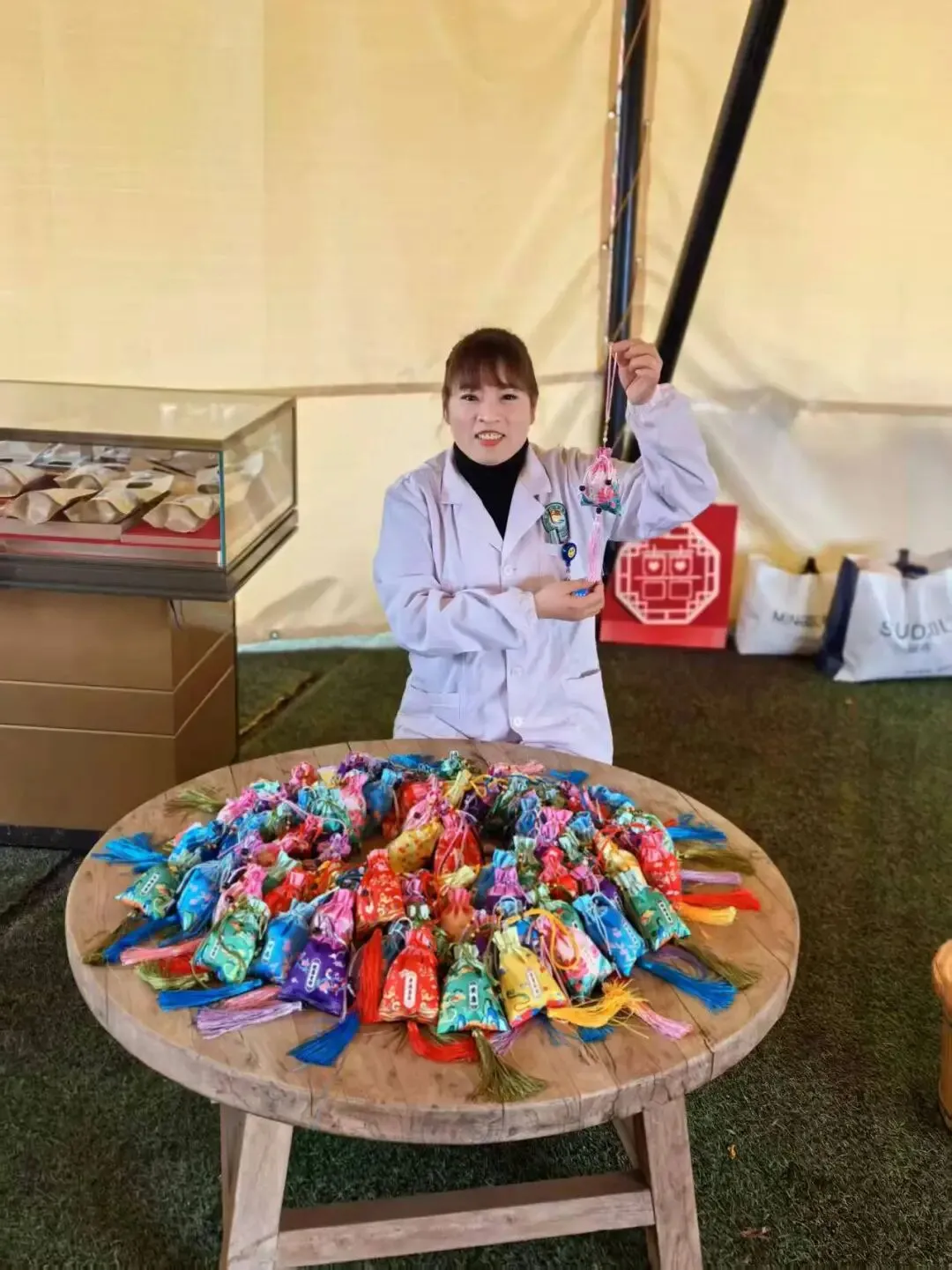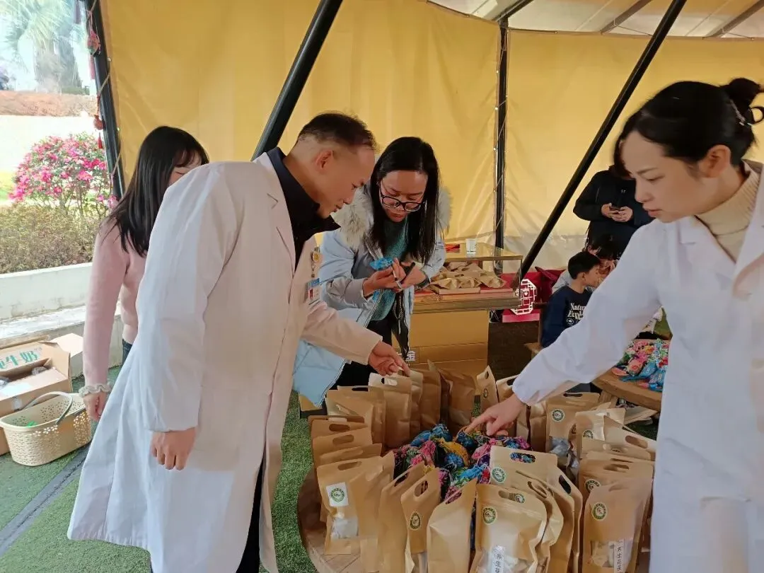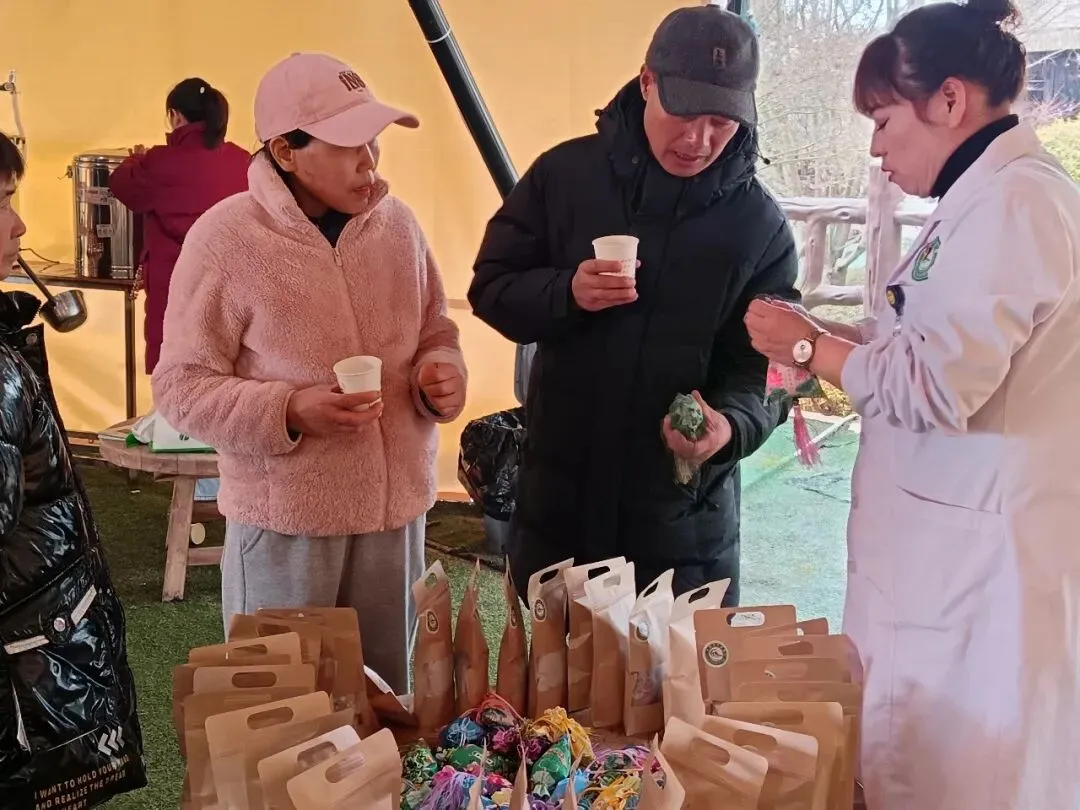 在中药香囊区,医护人员向游客们介绍中药香囊。这些香囊以中药材为填充物,经过巧妙设计,外观精美,香气宜人。游客们将香囊挂在身上或放在家中,不仅能散发出淡淡的中草药香,还能起到驱蚊、安神等作用。