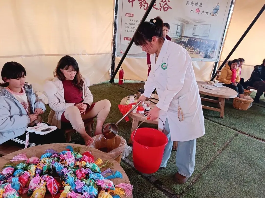 最受欢迎的当属中药足浴体验区。为保障足浴方的安全性与有效性,市中医医院专家团队基于本地气候特点及居民常见体质,多次研讨、精心配伍,确保每一包足浴药包都能发挥舒缓疲劳、促进循环、调理身体的积极作用。医护人员耐心为每一位居民调整水温、讲解足浴养生知识,提醒高血压、糖尿病患者及孕妇等特殊人群的注意事项。