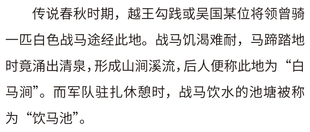传说曾有白马至此饮水憩息