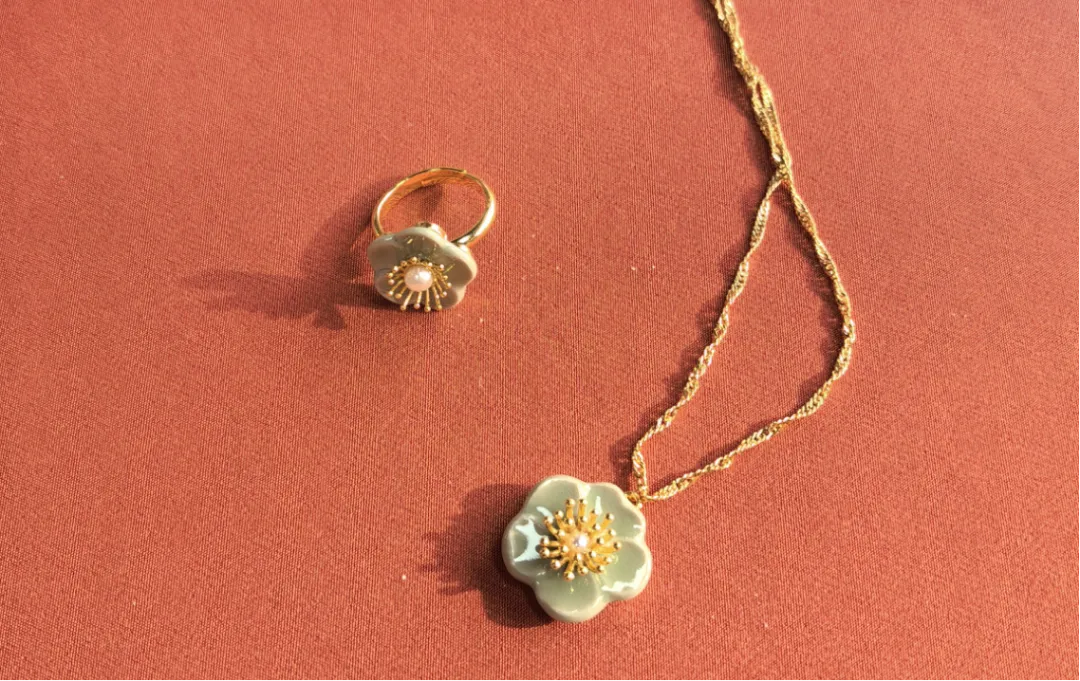 绣球花陶瓷胸针