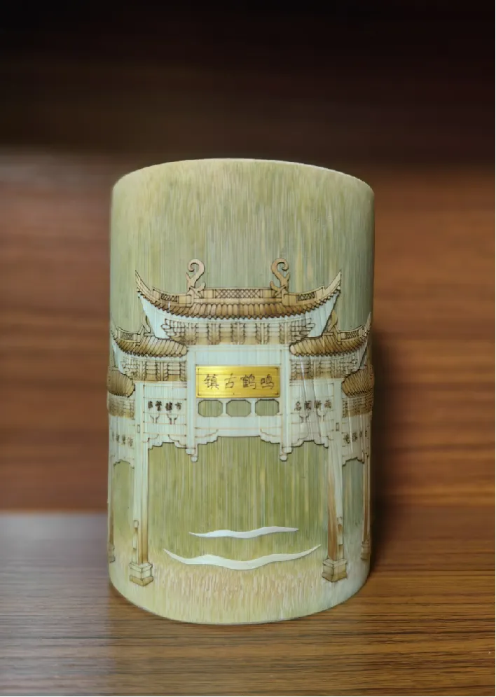 麦秆画竹节笔筒——鸣鹤古镇