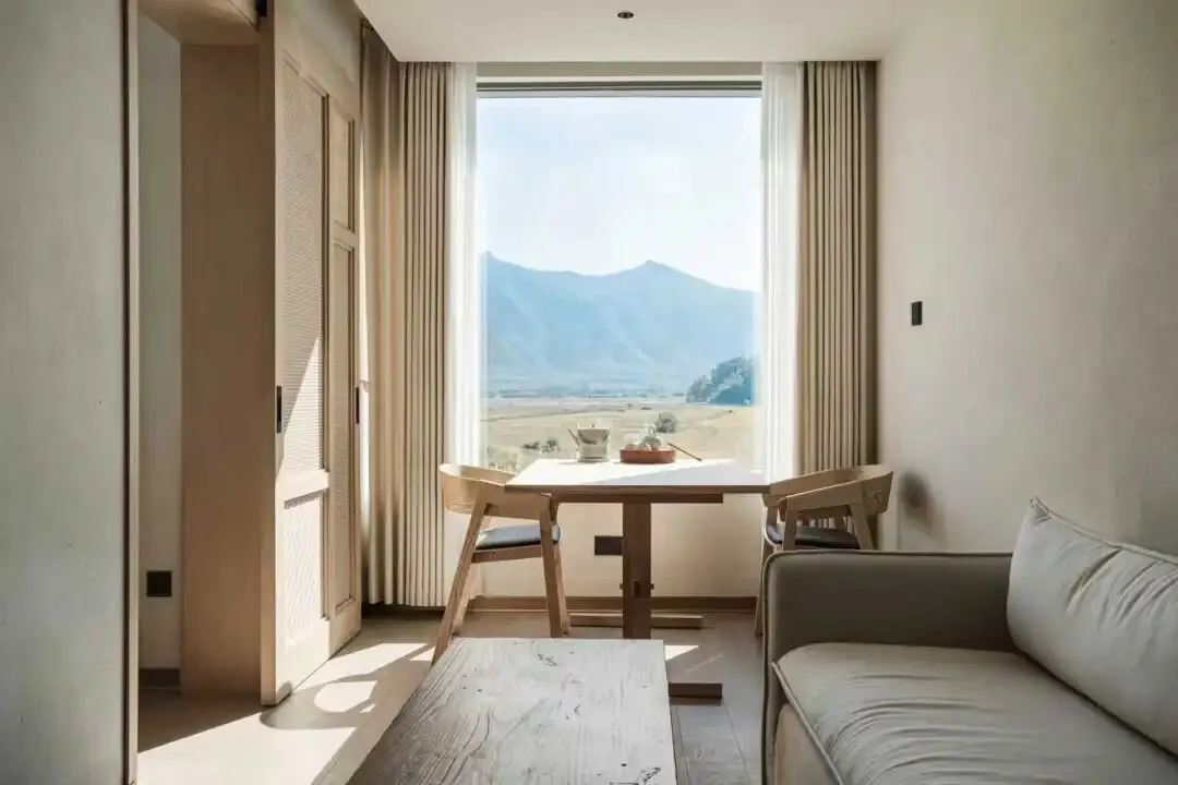 莫舍·江居是北江畔的民宿,清晨醒来就能看到江面薄雾与远山轮廓,民宿的江边露台是亮点,可边吃晚餐边看日落。
