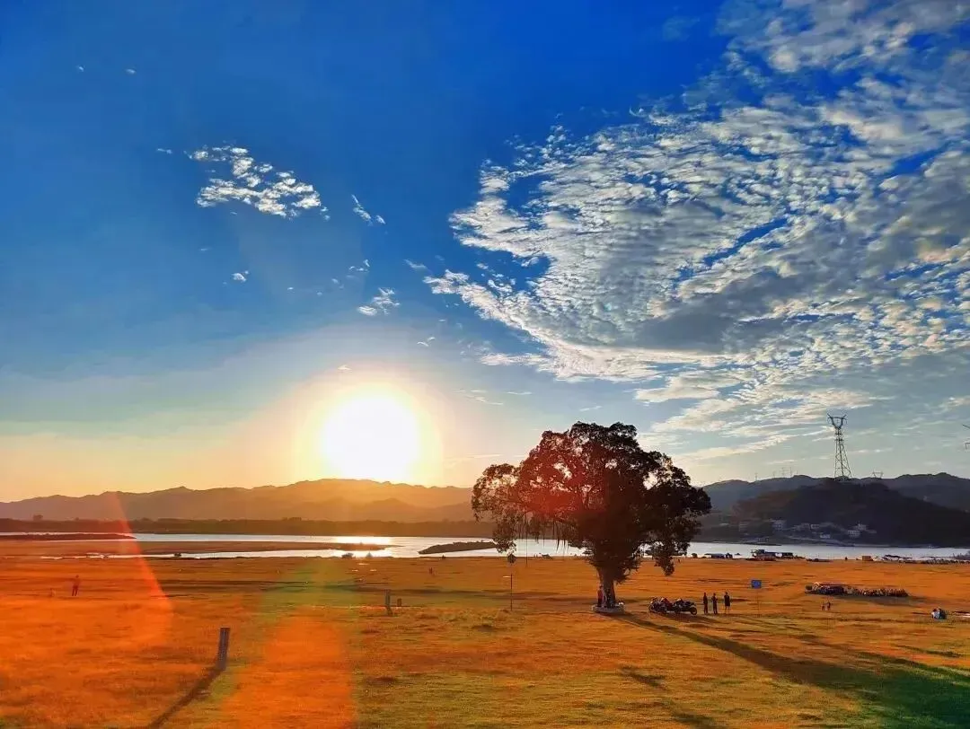 下午,前往北江大堤草原沙滩,这里是清远的知名网红打卡点。适合散步、骑行、野餐,傍晚时分,江水会被染成金色,拍照无需滤镜就是“大片质感”。