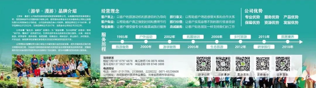 朋友们,我常常自问也问团队:我们凭什么能带领大家前行?我想,除了对这片土地的热爱,更基于我们二十余年一线实战积累的“专业力”。从1998年涉足旅游行业,到2002年创立西双版纳最早的游学户外俱乐部,2008年代表优秀旅游城市进行文旅服务工作,2017创立云南漫游旅游公司。都坚持在探索“体验式旅游”;从打造“茶山行、雨林行、边境行、民族行”等经典主题产品,到如今整合全省乃至全国资源,我们团队在研学旅行、雨林游学、自然教育、旅居康养、自驾越野、户外拓展、节庆策划等领域,经历了市场的充分检验,积累了从产品设计、安全执行到品牌营销的全链条专业能力。这份专业,是我们敢于提出新构想、开拓新旅程的底气,也是我们对会员承诺“不负信任”的资本。