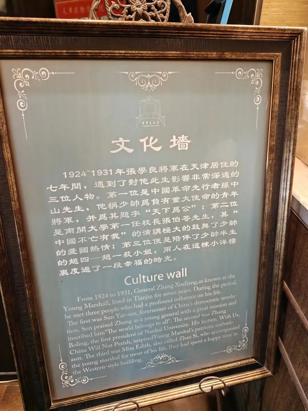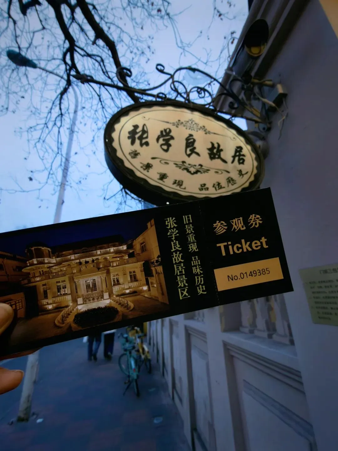 其实来天津之前已经看过不少攻略,纷纷提到二张(张学良、张爱玲)故居在门口看看就得了没必要买票参观,但是在街上逛着逛着一抬头看到这个牌子,还是没忍住好奇心。好嘛最终还是决定老老实实买票进去看看。