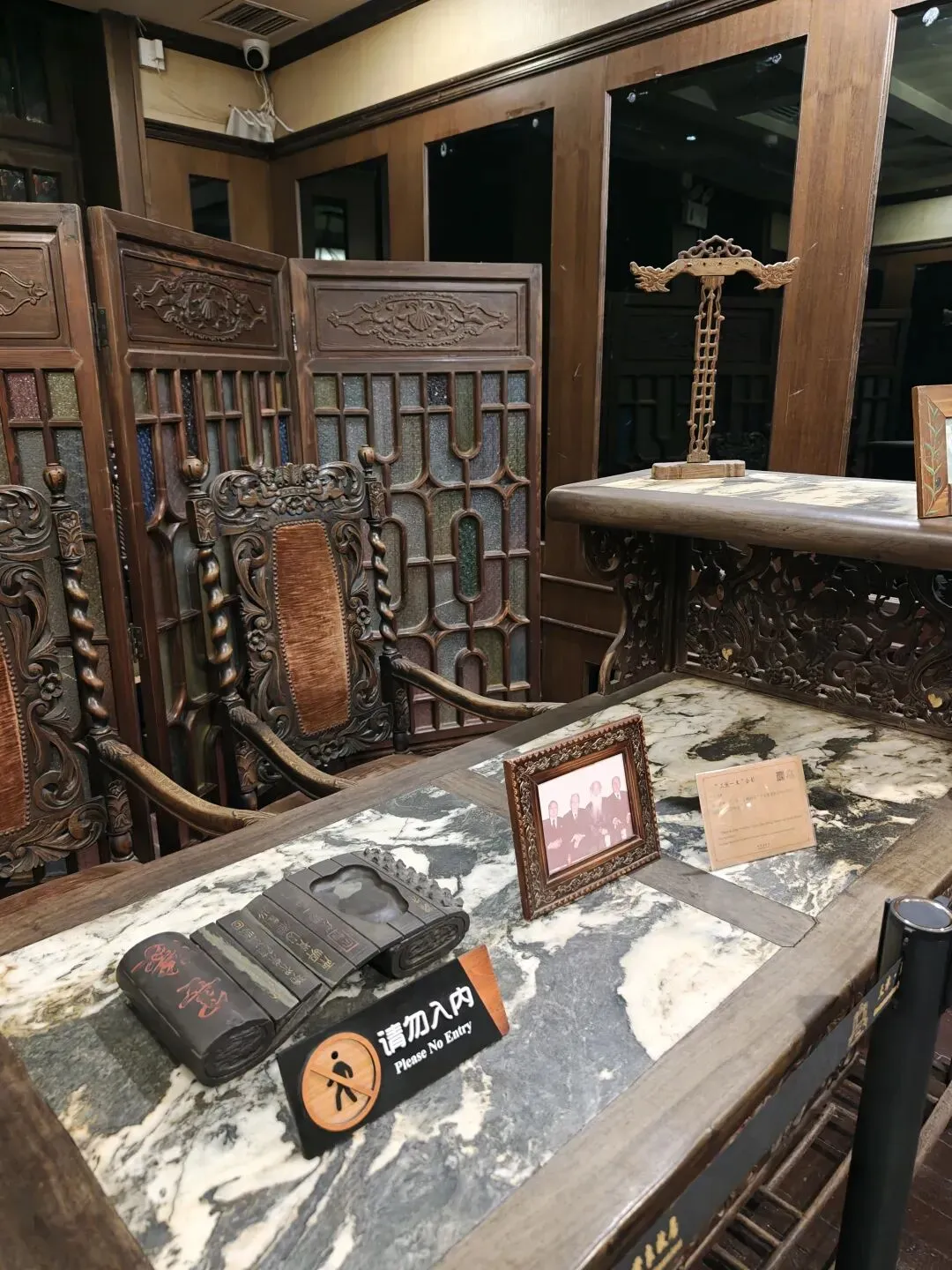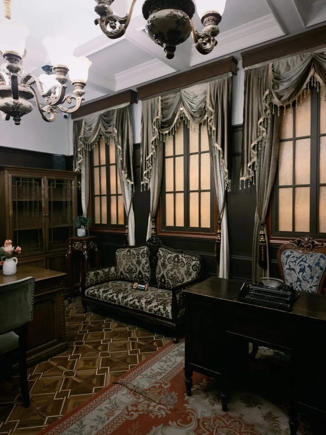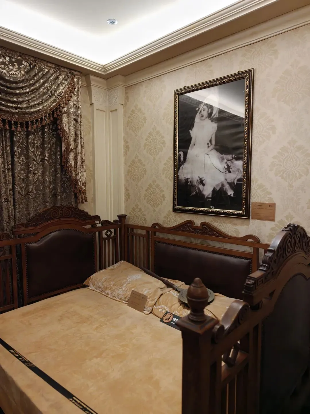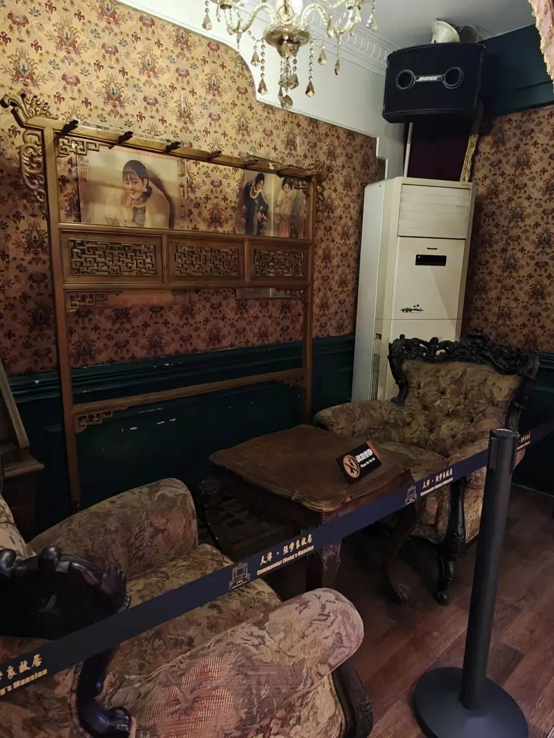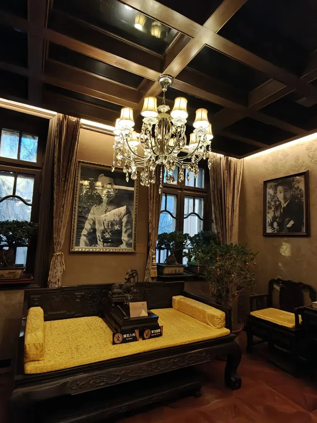 票价80大洋一张,着实不便宜,买票的时候看到售票窗口写了晚间时段准点有循环的公益讲解,并且特地和售票窗口确认过说是有讲解,但是真进去了才发现并没有公益讲解,只有寥寥几个像我一样撞进来的游客在屋里乱溜达。没了讲解逛这故居宅子,也就只能看看家具装潢和一应陈设,实在没什么意思。