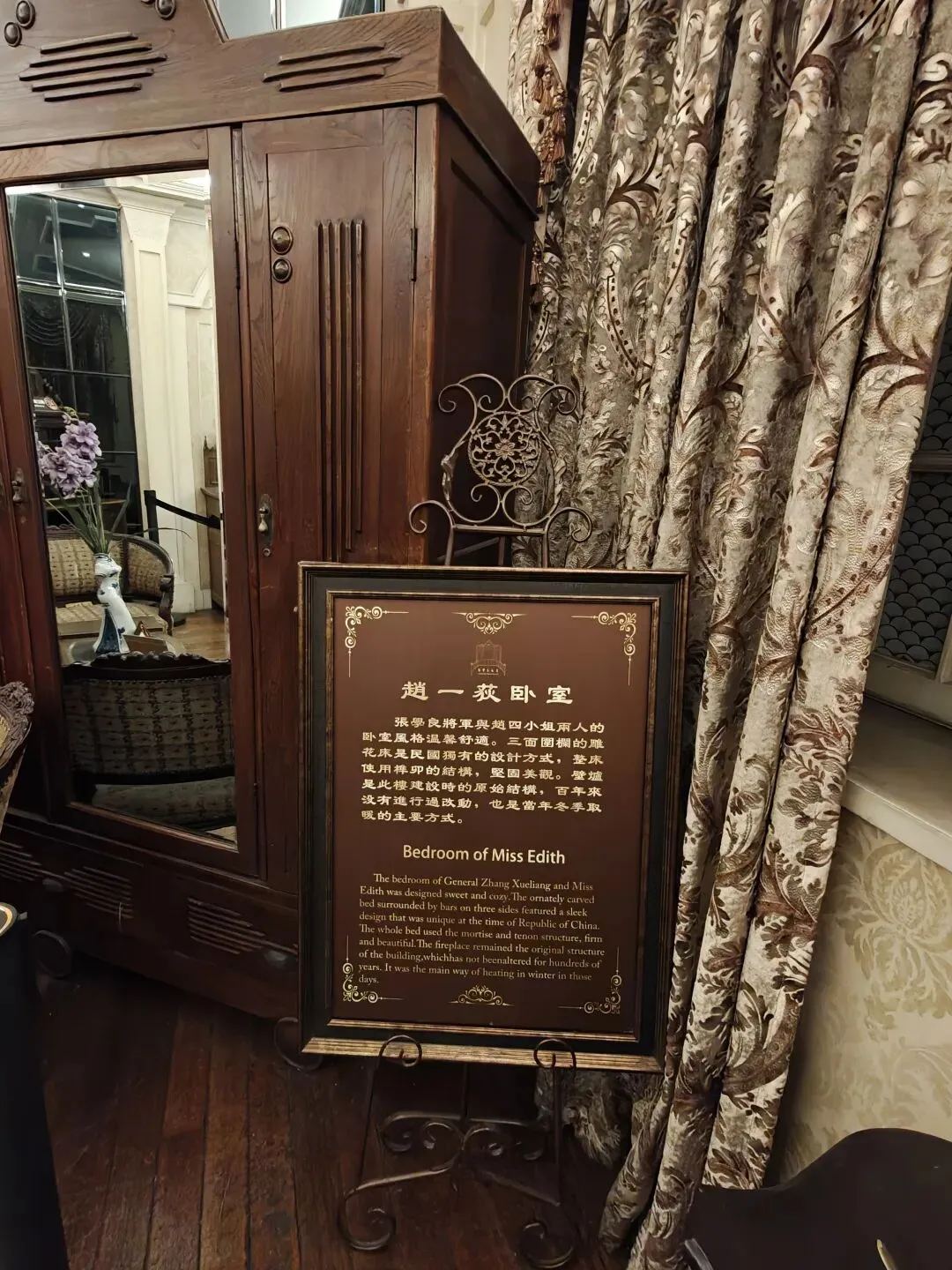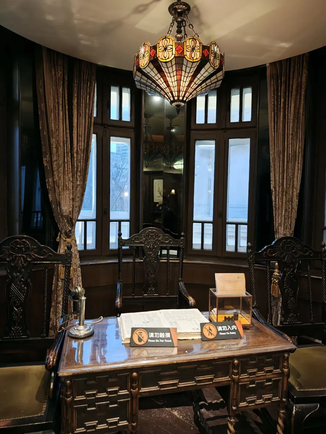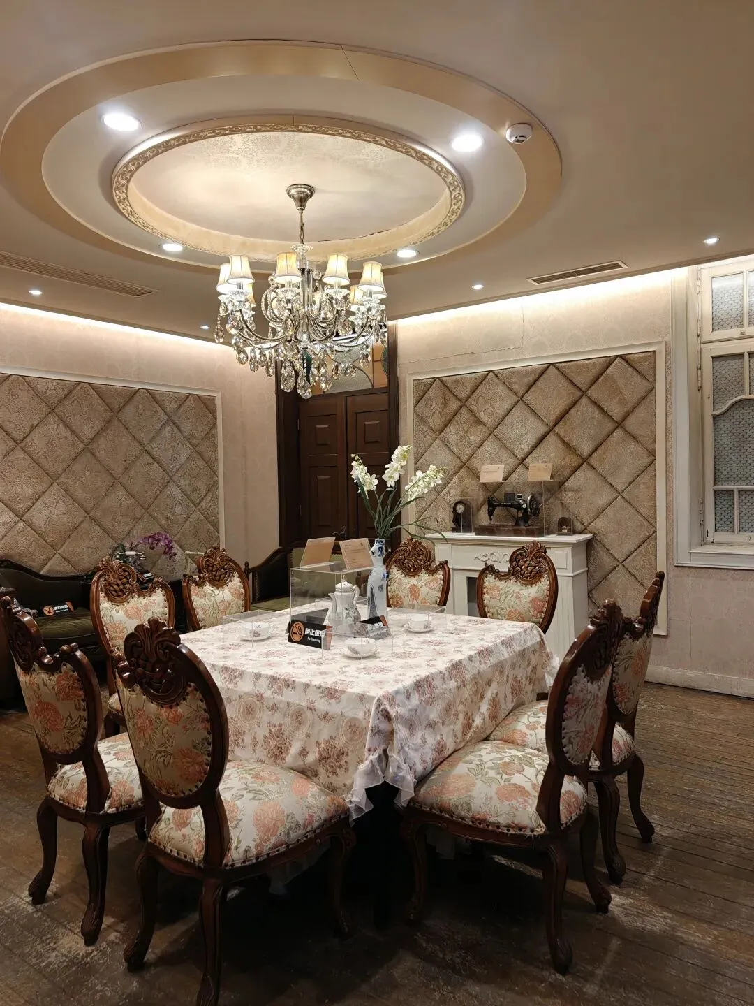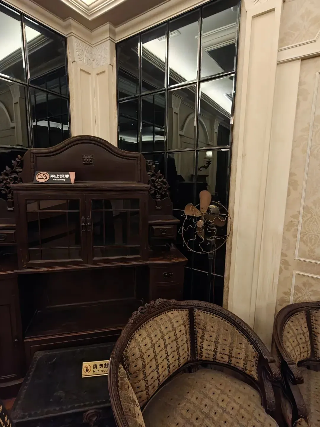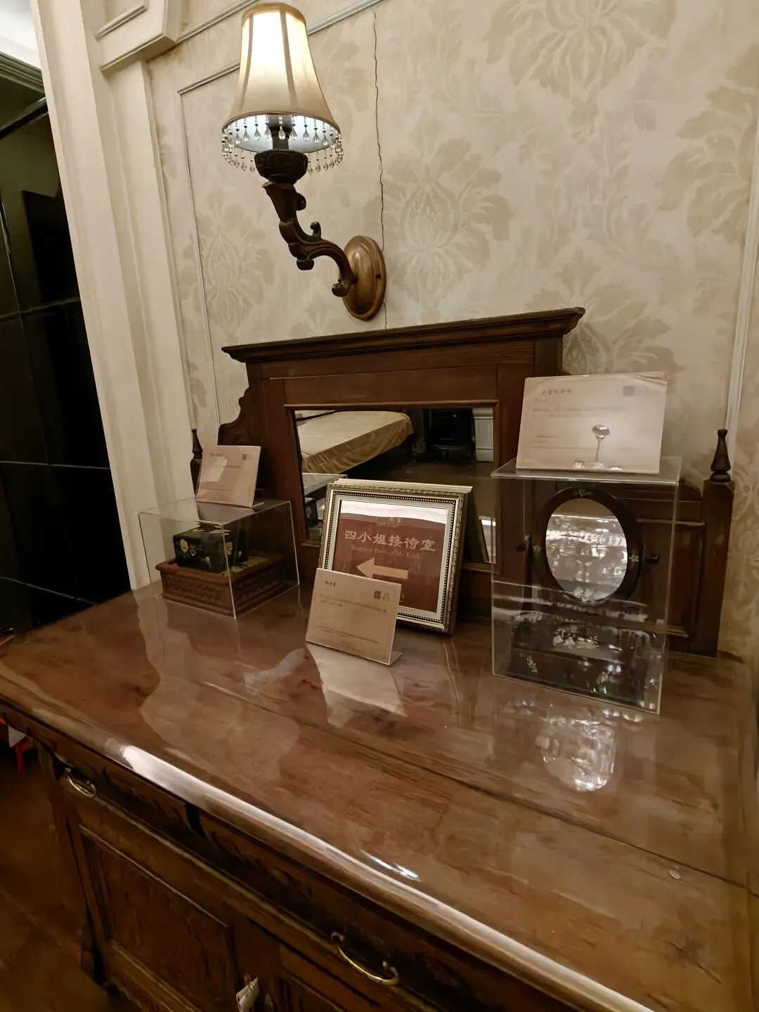 票价80大洋一张,着实不便宜,买票的时候看到售票窗口写了晚间时段准点有循环的公益讲解,并且特地和售票窗口确认过说是有讲解,但是真进去了才发现并没有公益讲解,只有寥寥几个像我一样撞进来的游客在屋里乱溜达。没了讲解逛这故居宅子,也就只能看看家具装潢和一应陈设,实在没什么意思。