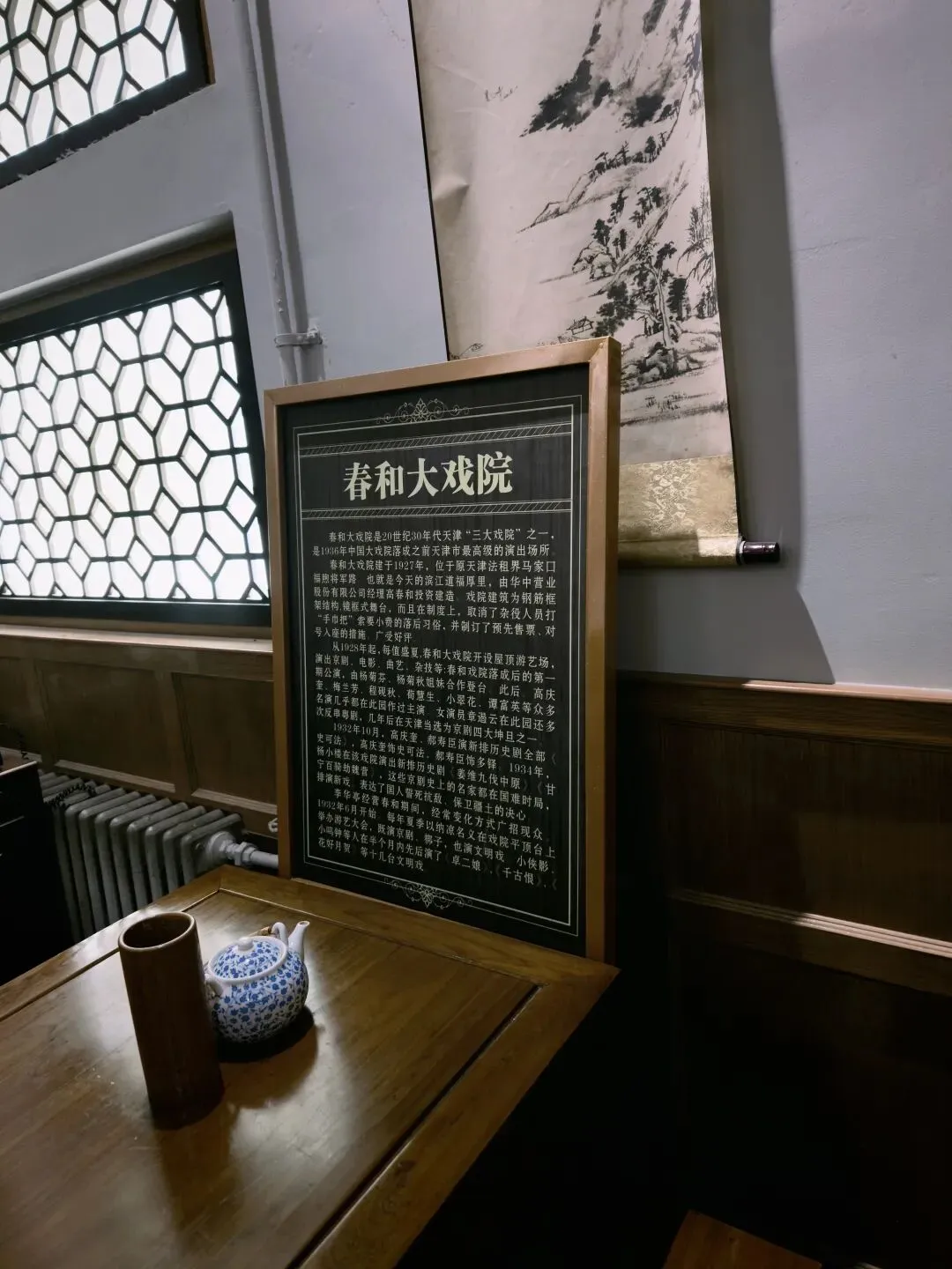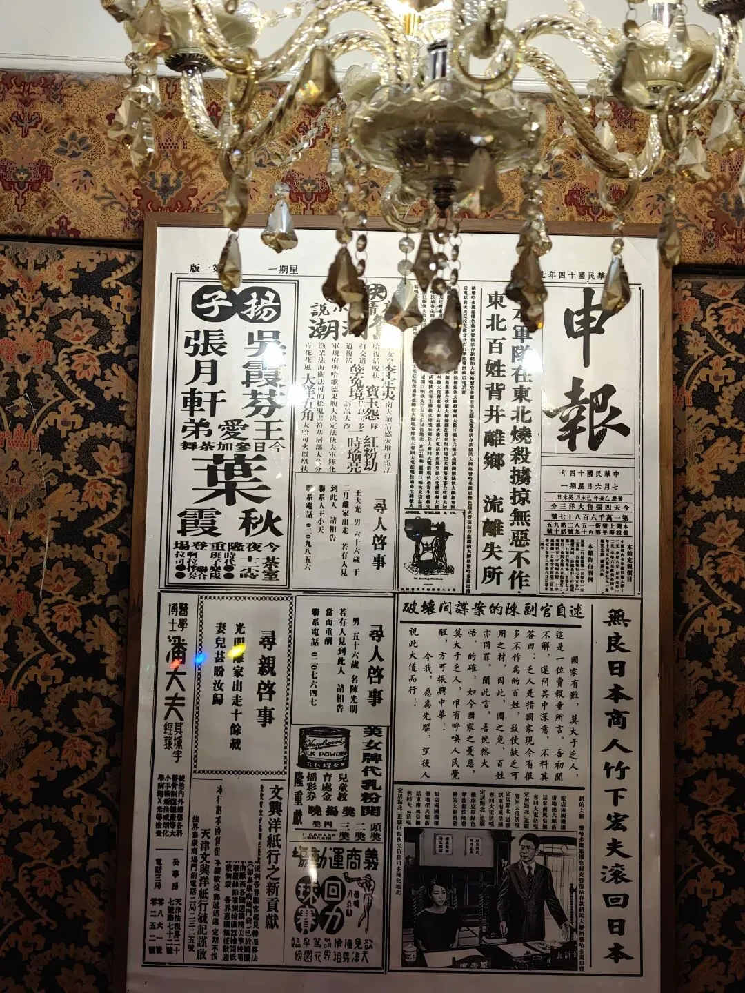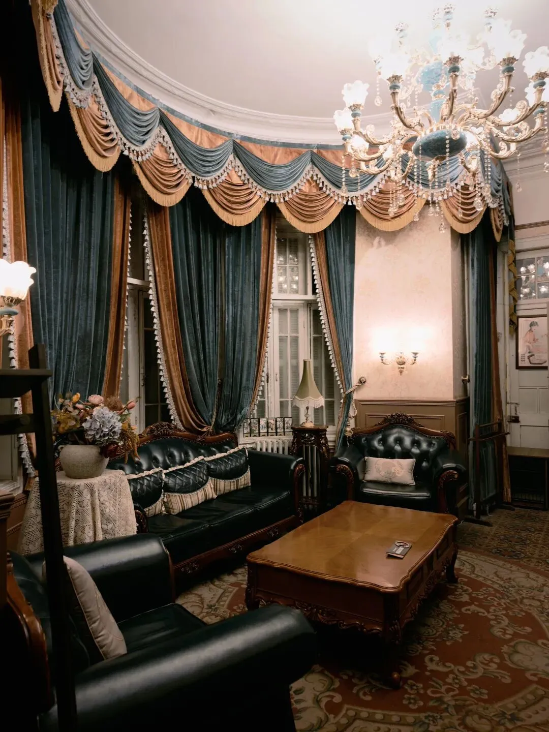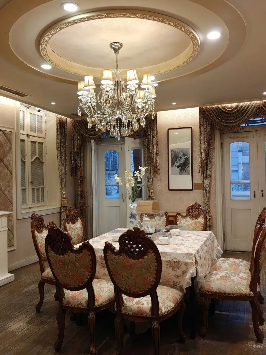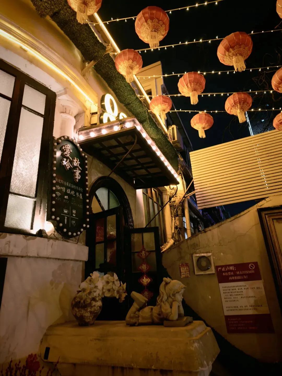 票价80大洋一张,着实不便宜,买票的时候看到售票窗口写了晚间时段准点有循环的公益讲解,并且特地和售票窗口确认过说是有讲解,但是真进去了才发现并没有公益讲解,只有寥寥几个像我一样撞进来的游客在屋里乱溜达。没了讲解逛这故居宅子,也就只能看看家具装潢和一应陈设,实在没什么意思。