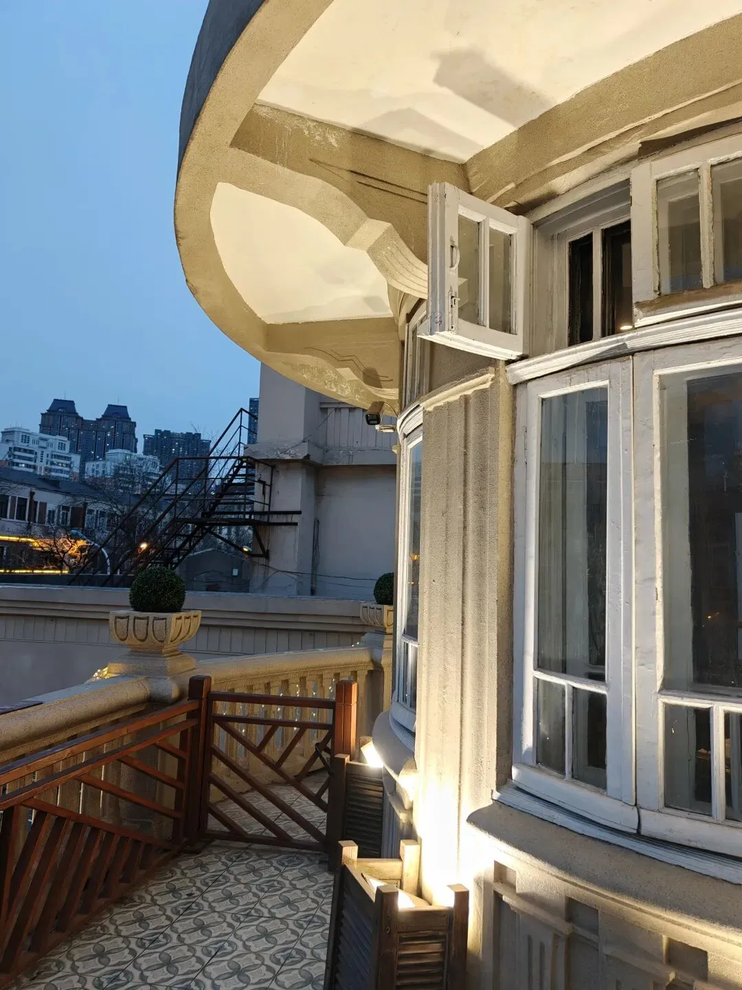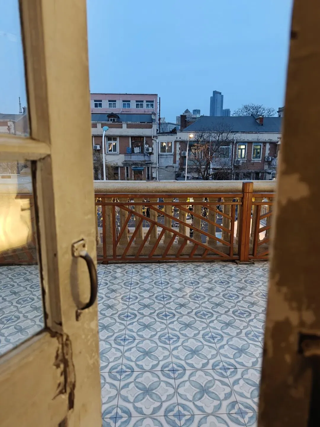 这个天台可以推门出去,冬天的天台凉飕飕的,但是如果是夏夜晚风的话应该比较惬意。