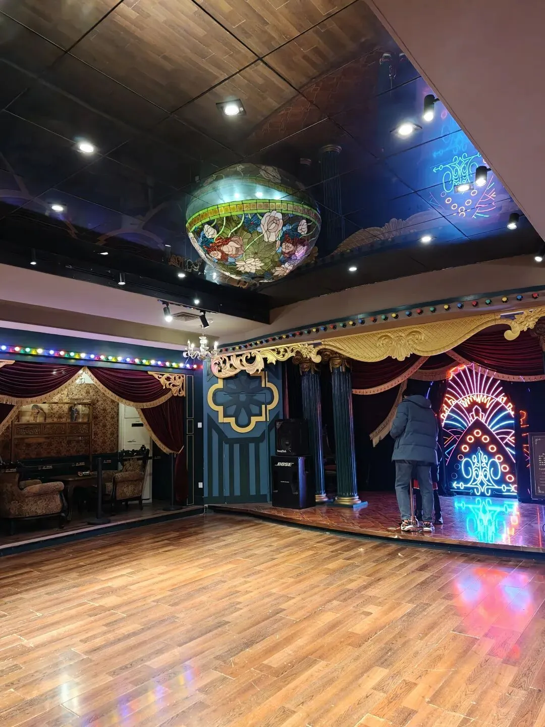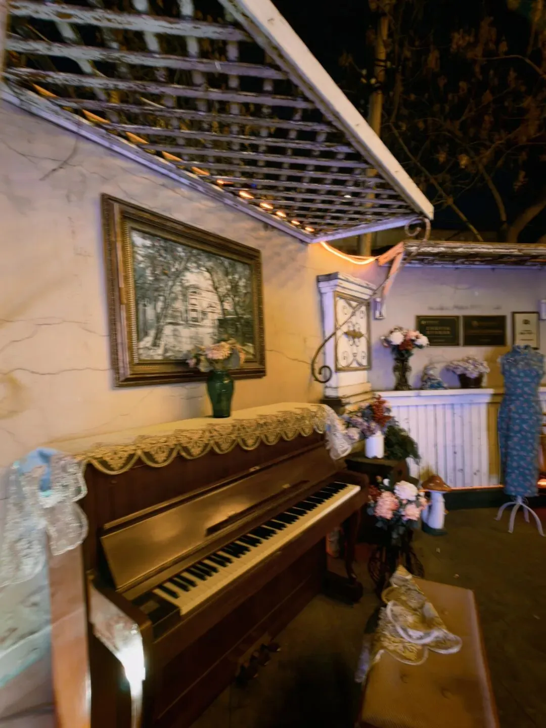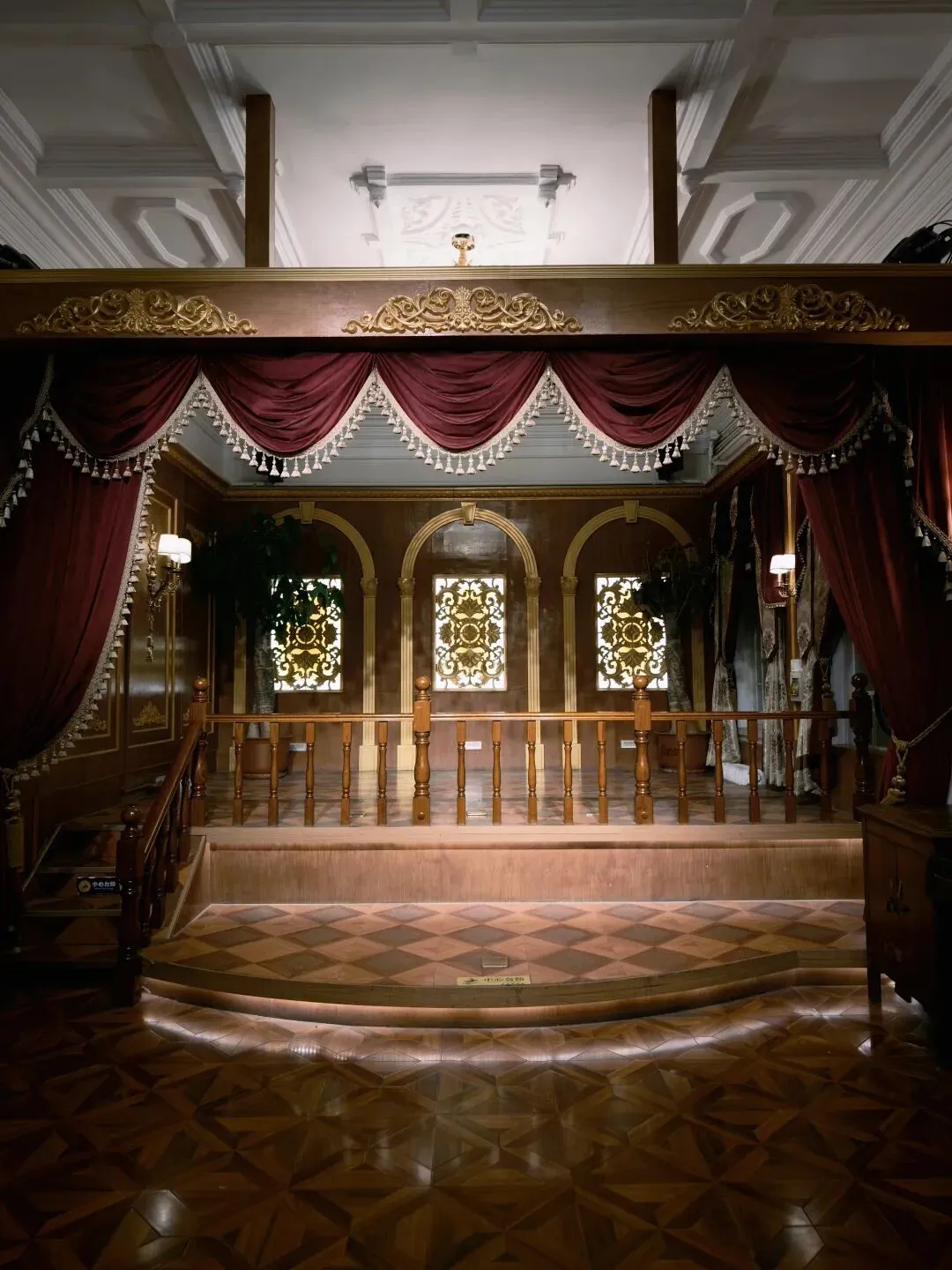 楼上楼下逛完一圈,就算逛完了。深感这80大洋花的实在是很冤,于是跟着其他游客去后院看了附带的跳舞表演,看着三位民国打扮的npc莫名其妙尬舞一通,观感实在一言难尽(领舞的小姐姐还挺敬业的,陪衬的二位男士感觉纯属是被抓来上班的,能说什么呢只能说算了算了都不容易)。