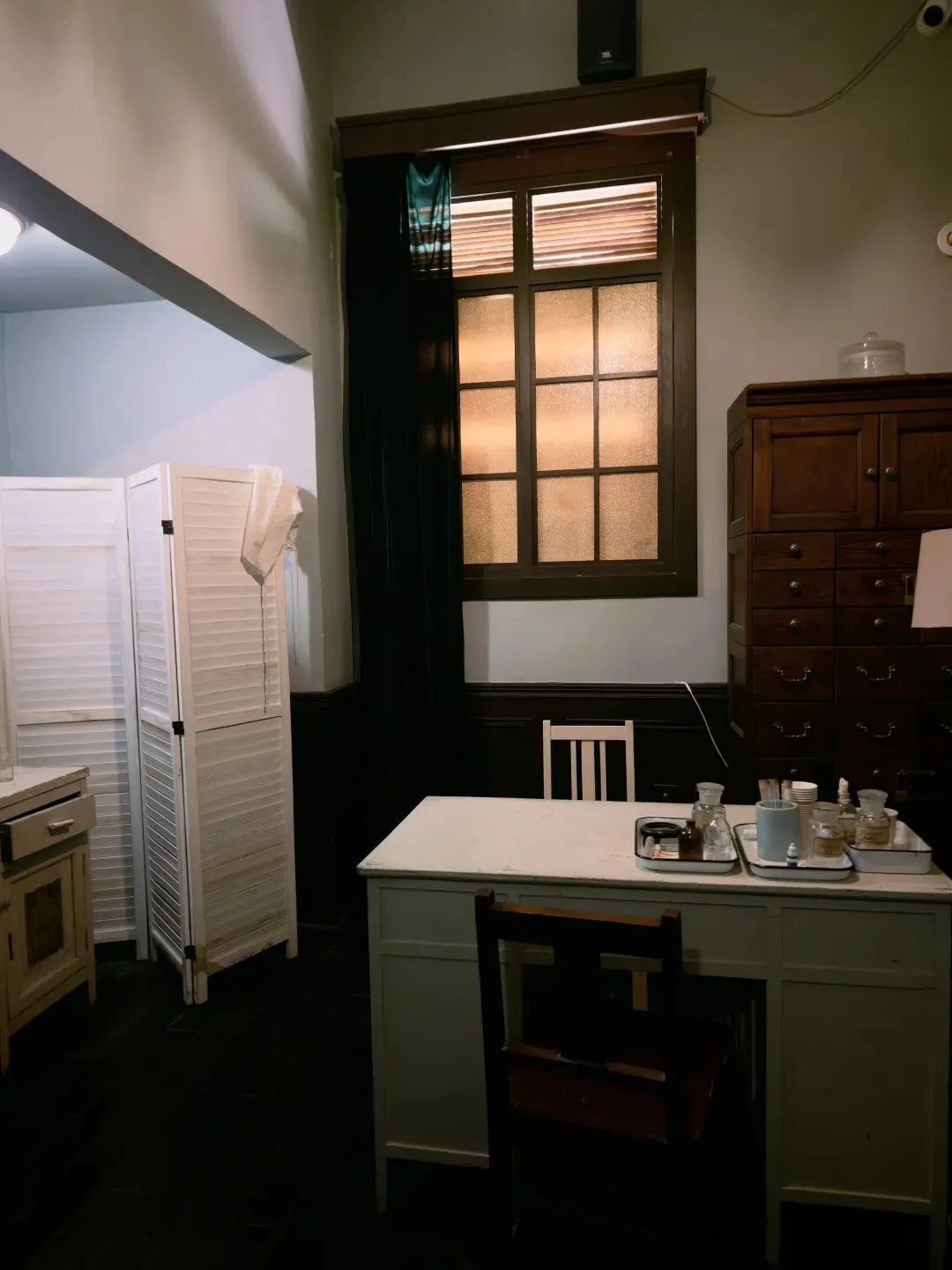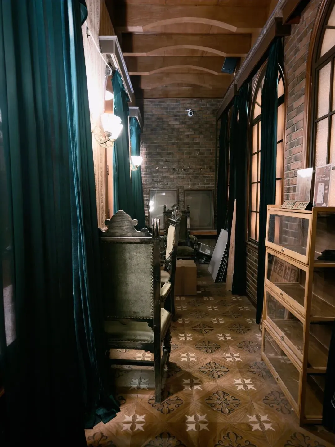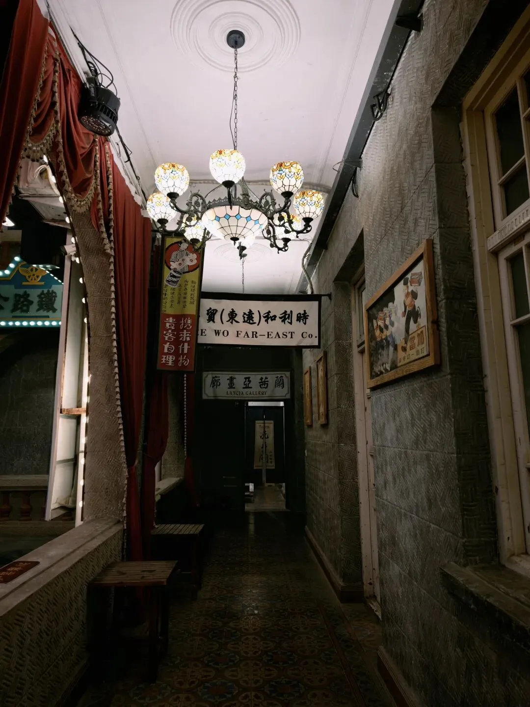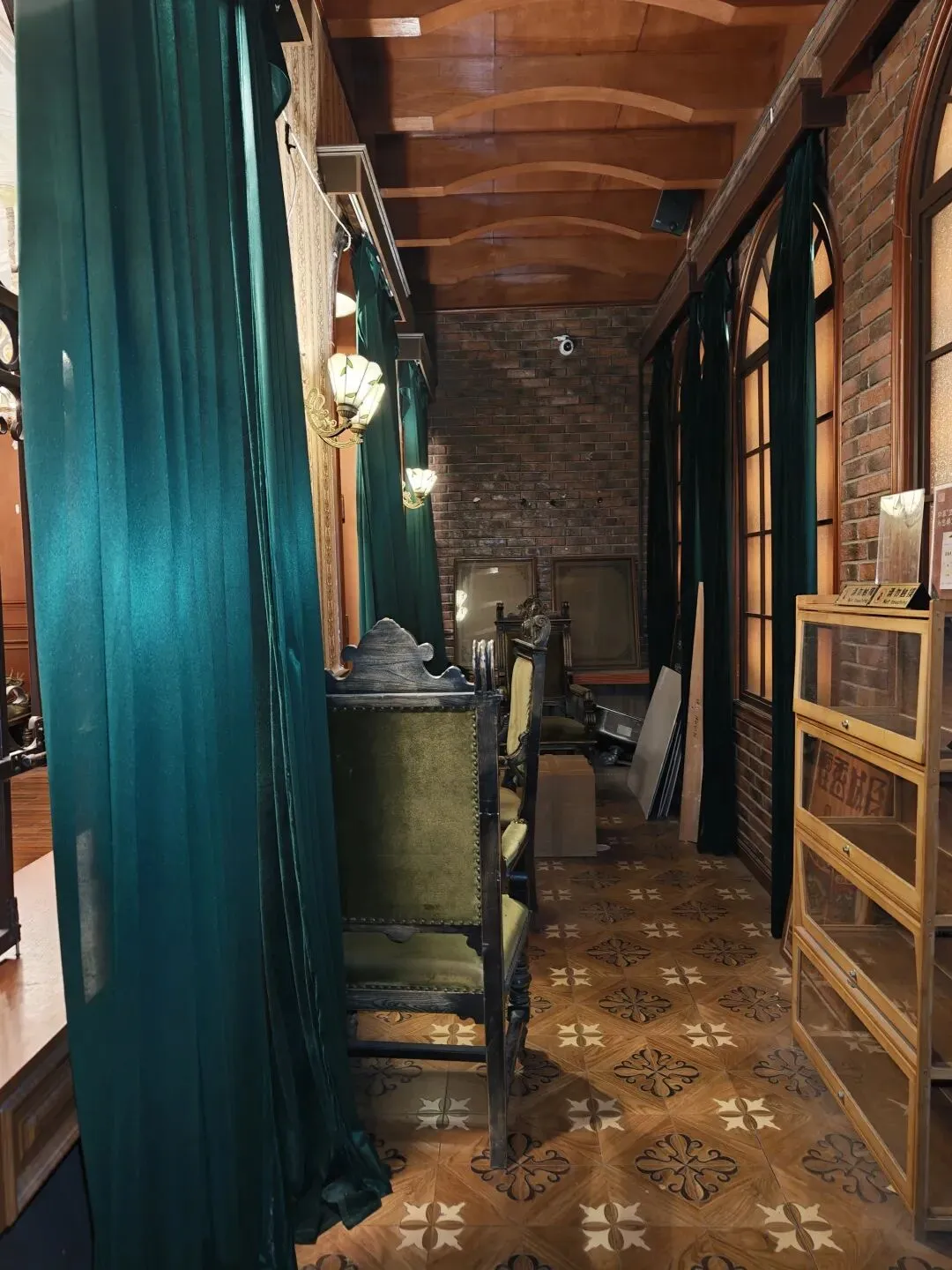 后院真正还算有点意思的是这个沉浸式体验的小楼,展示了一些理发馆、茶馆、当铺、中药铺、警局等民国景致。淡季没什么游客,我在里面穿梭乱窜,感觉像在体验密室逃脱。