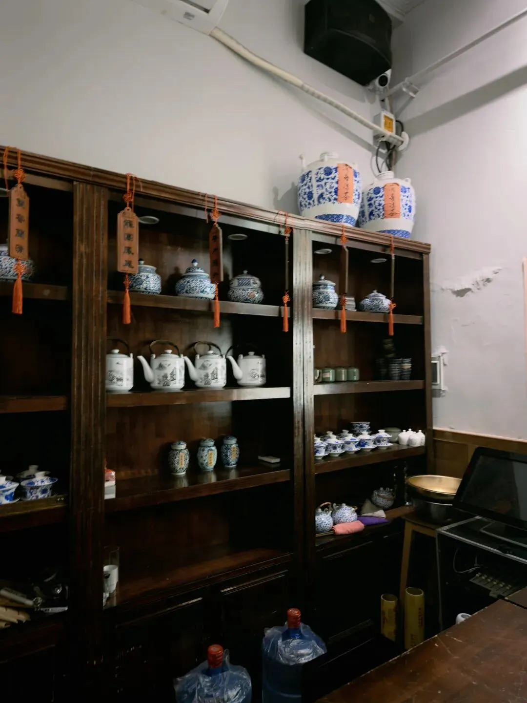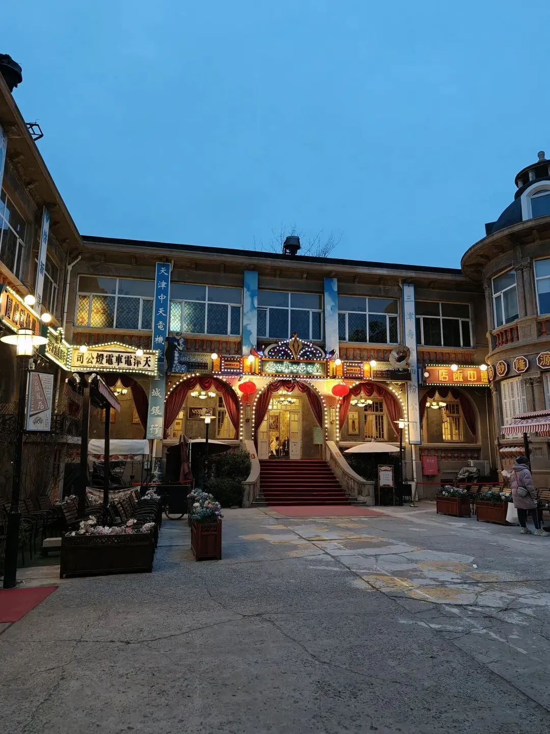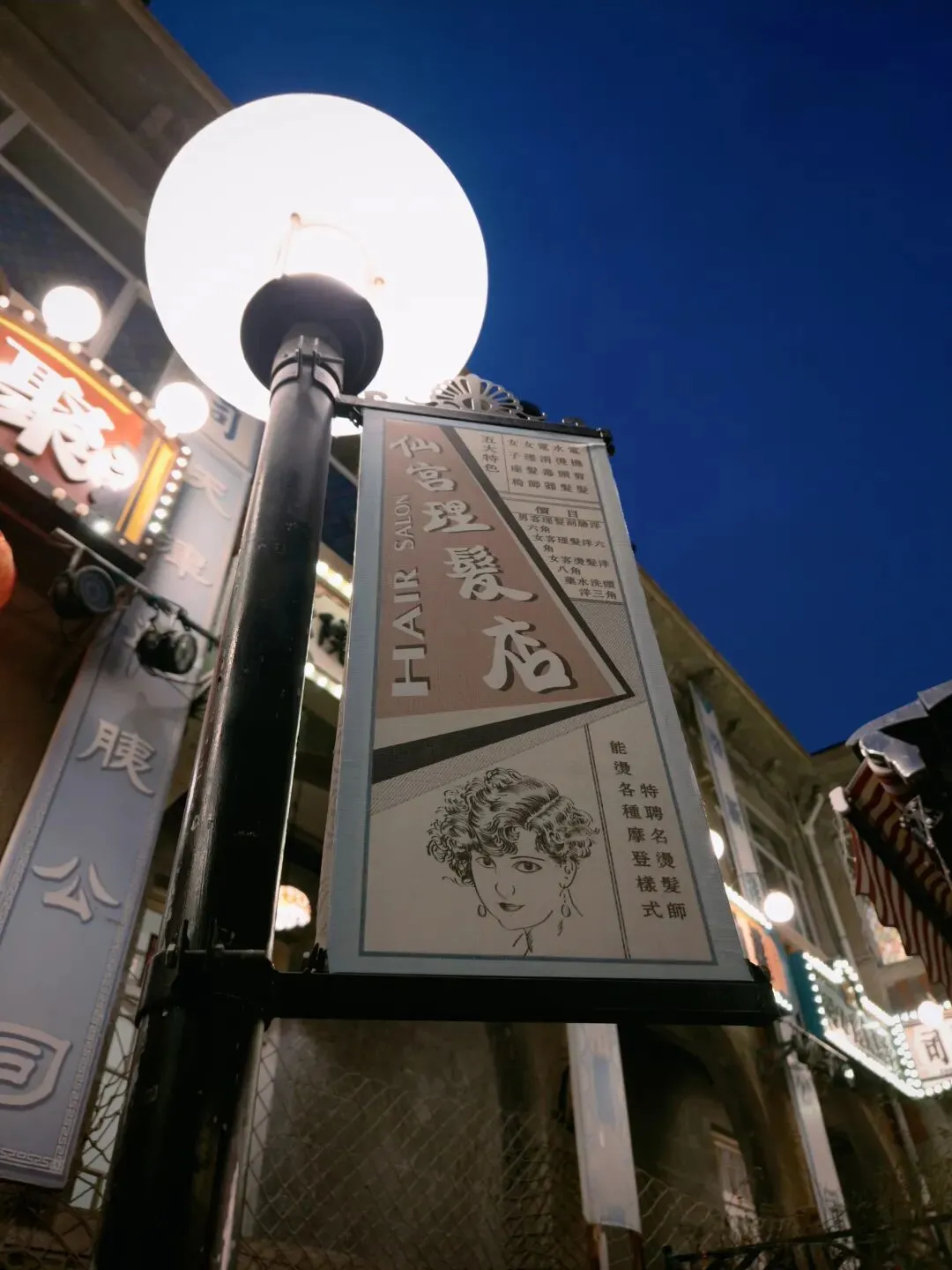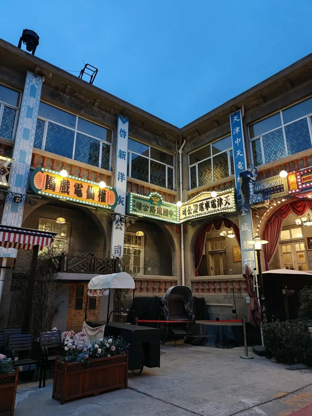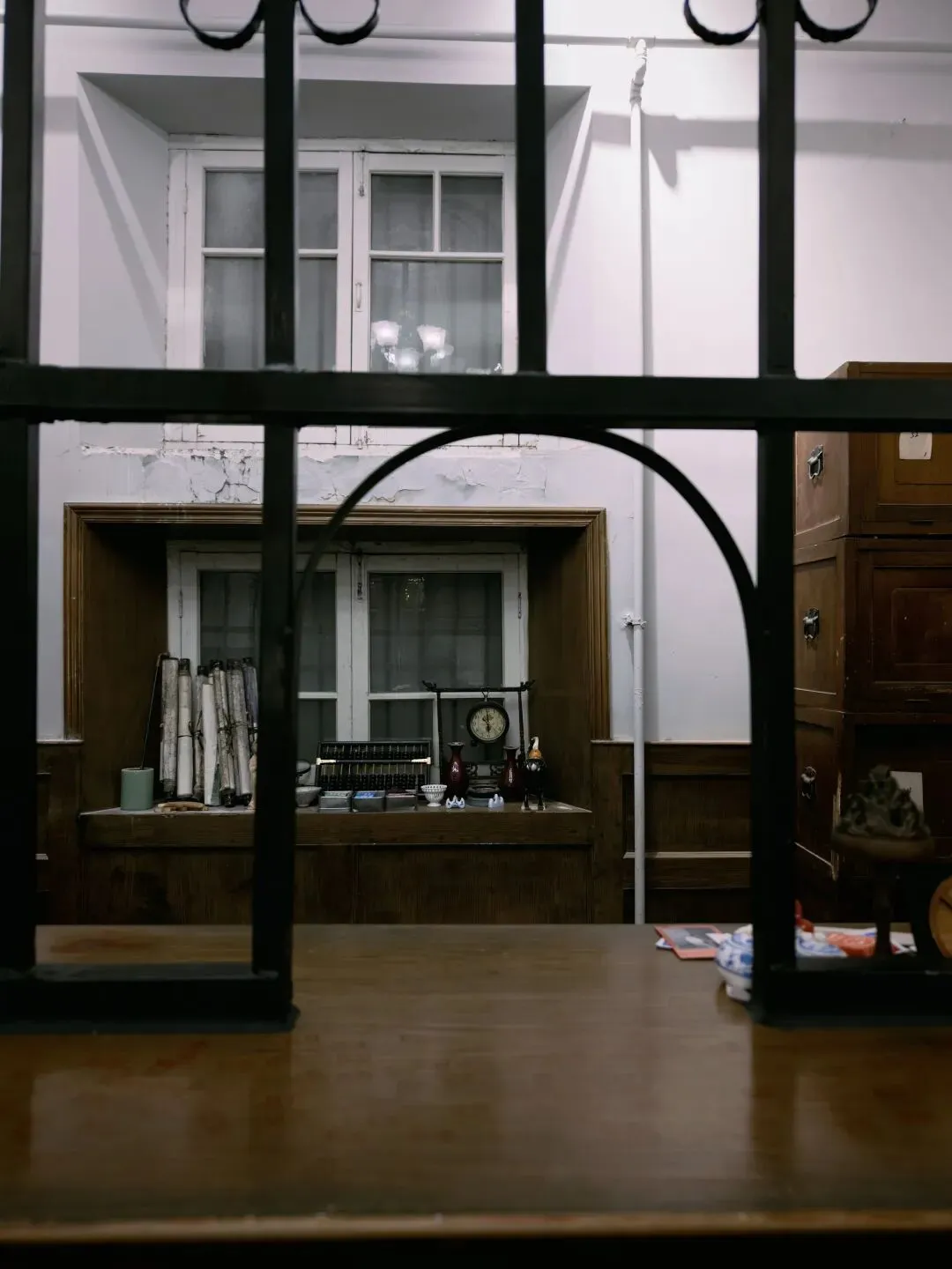 后院真正还算有点意思的是这个沉浸式体验的小楼,展示了一些理发馆、茶馆、当铺、中药铺、警局等民国景致。淡季没什么游客,我在里面穿梭乱窜,感觉像在体验密室逃脱。