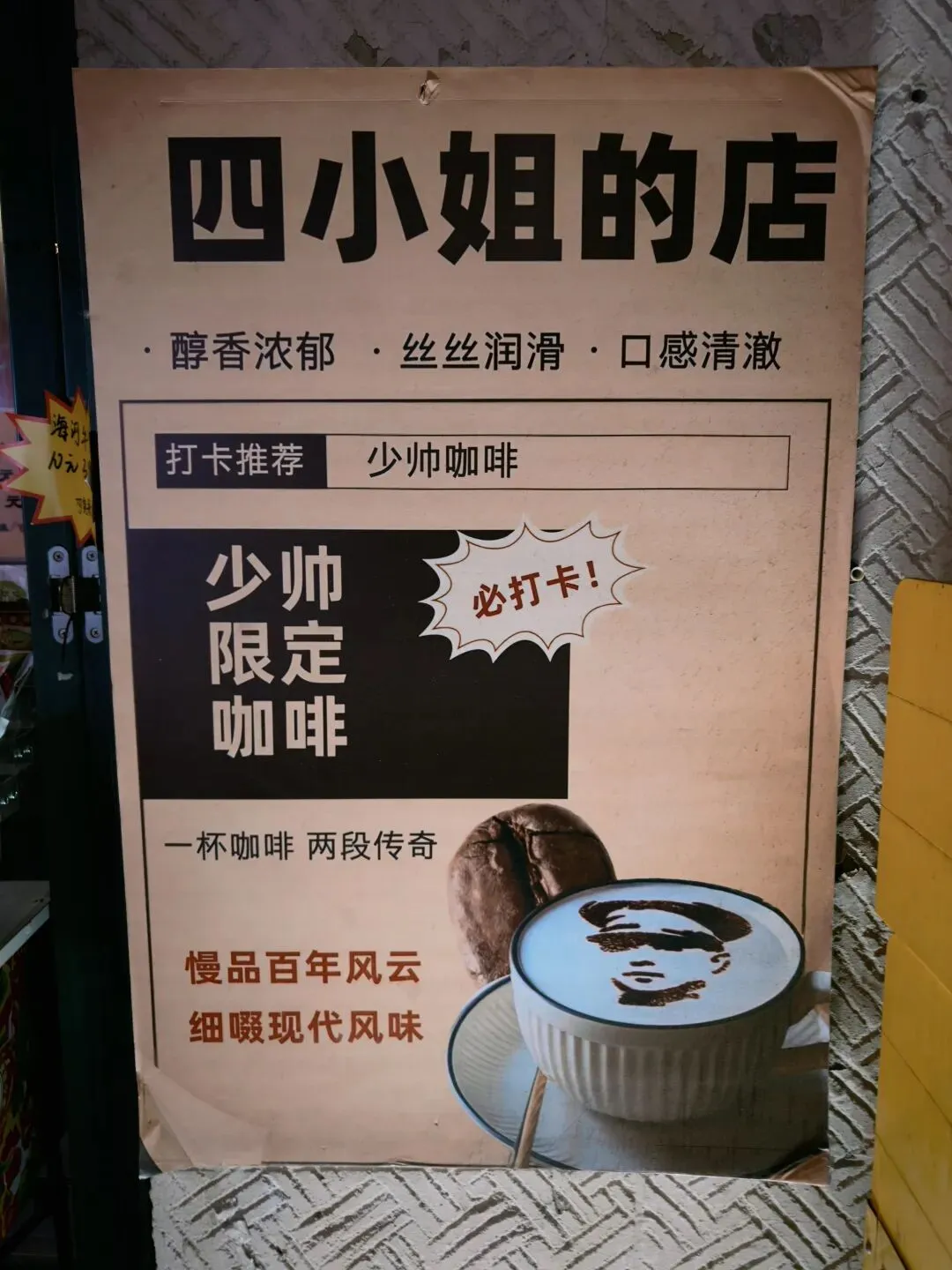 园区里面有卖“四小姐咖啡”,出门看到这里在卖“少帅咖啡”,不知道好不好喝,如果有尝试过的朋友们可以在评论区留言。