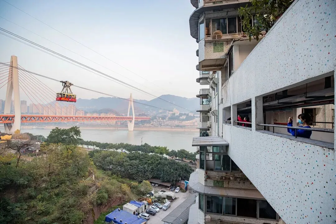 💡嗑点分析:这是最具重庆烟火气的“热门镜头”——24层无电梯的魔幻居民楼白象居,本身就是一个立体的市井生活“博物馆”。而穿梭于楼宇之间的长江索道,则是划过这幅生活画卷最动人的一笔。