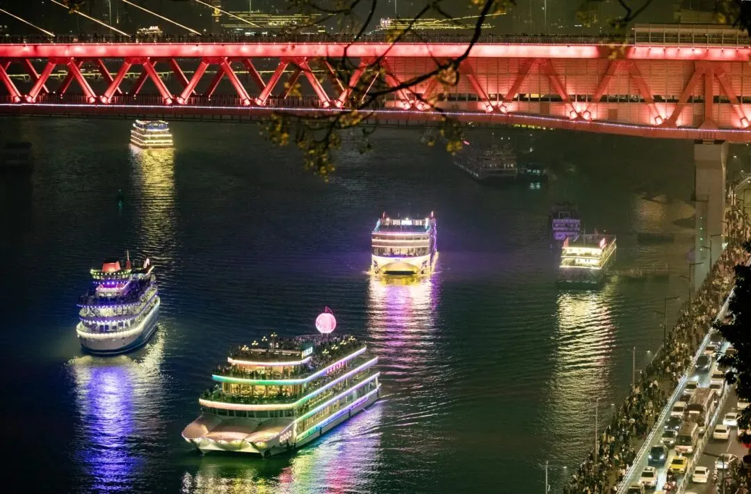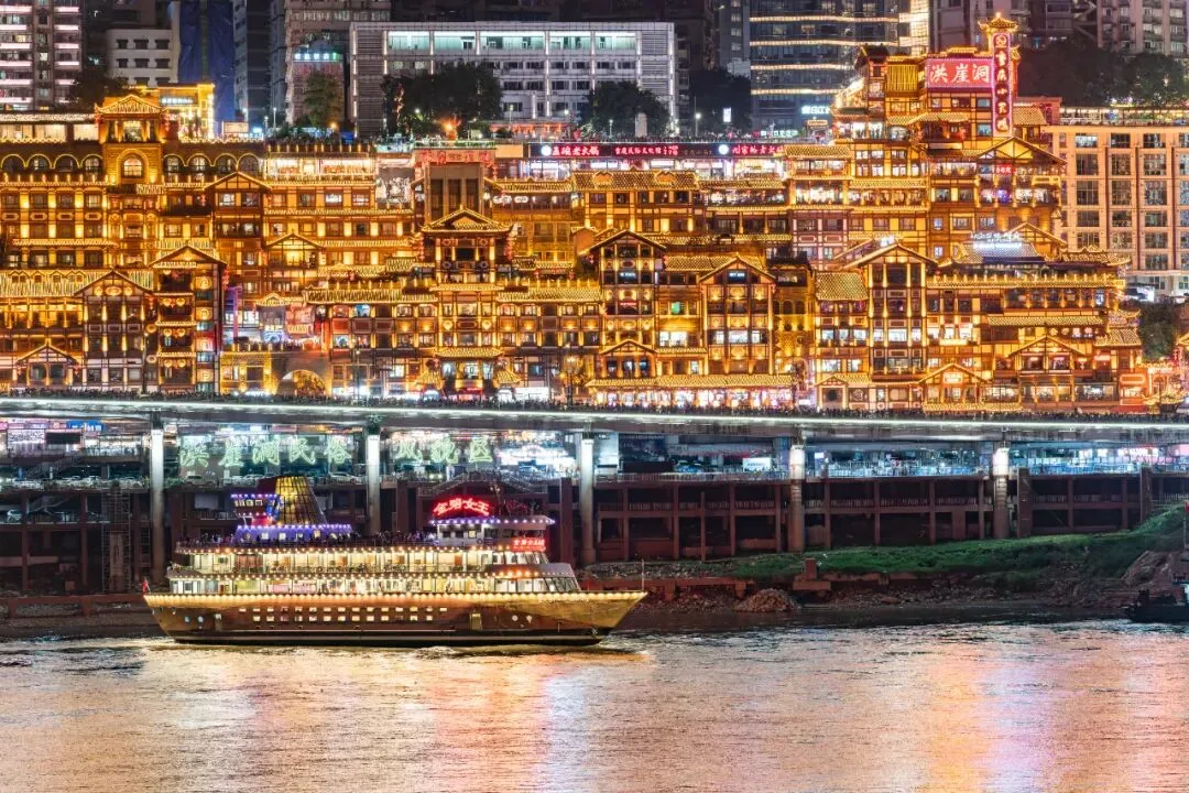 💡嗑点分析:这是体验渝中夜景的“沉浸式套餐”——乘坐两江游轮,你就收获了一个360°无死角的动态观景台。洪崖洞、重庆来福士的灯光如同巨幅画卷,在眼前缓缓展开。