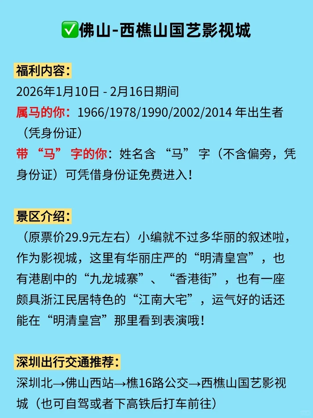 🐎2026年马年,广东哪些景区对生肖属马/姓马游客免费呢? 小编整理了5个,大家可以收藏一下~