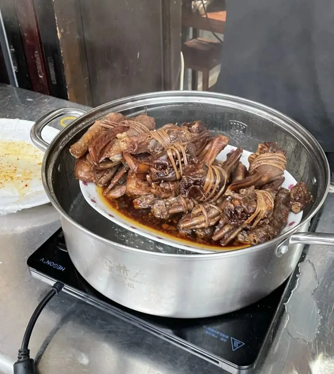 烧禾虫,是广东省传统粤菜名品,禾虫主产于珠海斗门县咸淡水交界的稻田泥沙中。其以禾虫为主料,搭配猪肉、冬笋、香菇等辅料,经爆浆、焯熟、翻炒等工序制成,成品以异香、爽脆、微辣为特色。制作时需将活禾虫静置爆裂出浆,与肉丝、笋丝等配料混合,佐以陈皮、辣椒等调味,经蒸炖烘干后形成糕状质地。禾虫富含蛋白质、维生素B及矿物质,具补脾暖胃的食疗价值,搭配陈皮可增强健脾功效。该菜品衍生出炖钵仔禾虫、禾虫蒸蛋等多种烹饪方式。