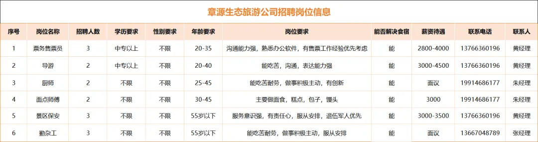 赣州丨丫山国家级旅游度假区招聘声明:本微信公众号刊载此文,无任何商业目的,纯属公益转发,目的是架起求职者和用人单位之间的桥梁,传递更多的招聘就业信息,请您找工作时候务必高度警惕各类求职陷阱。若来源标注错误或侵犯了您的合法权益,请及时与我们联系,我们将及时更正、删除或依法处理,微信号(含:商务合作):sqdzry。