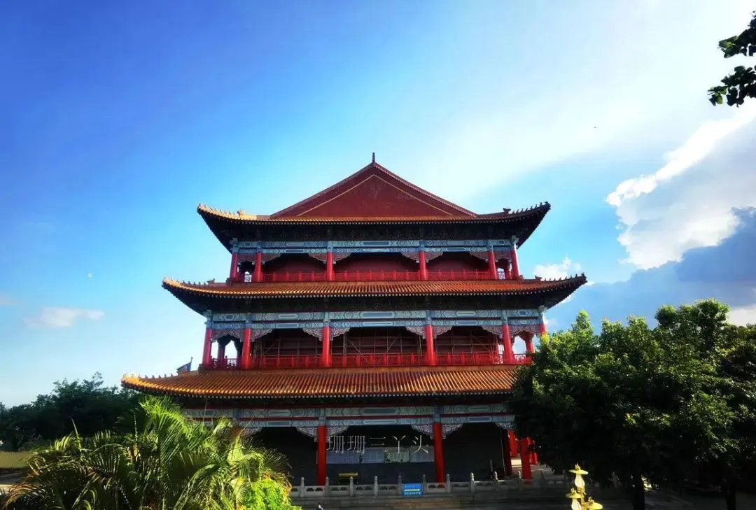 于1994年10月23日建成,总高为40.88米,使用120吨青铜铸就,外贴纯金180两;其正对东南18度,手持玉净瓶,慈祥地俯瞰着浩瀚的狮子洋和珠三角大地,日夜佑护着这方土地和百姓们风调雨顺,国泰民安。