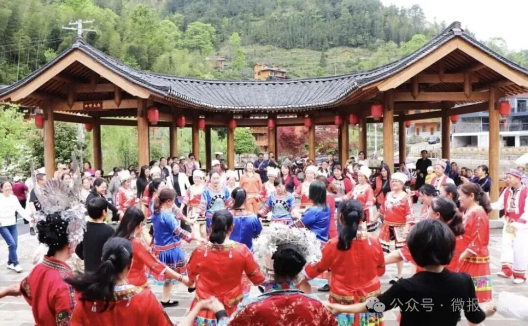 具体安排:围篝火跳苗舞、唱山歌、品烤香猪、品高山流水,歌手与游客互动对唱,穿插民族舞蹈表演。现场抽奖,奖品包括“免龙洞峡景区门票+住宿1晚”套餐(限3名)和98元套餐铁锅炖大鹅(限3名)。