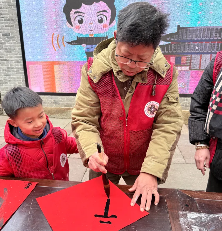 墨香袅袅中,闻讯而来的游客纷纷驻足,有的挑选心仪的福字,有的请志愿者定制专属春联,孩子们好奇地围观学习,游客们则拿着刚到手的福字笑意盈盈。志愿者穿梭其间,协助铺纸、添墨、晾晒,将墨迹未干的祝福小心翼翼地送到游客手中,让浓浓的年味儿随着笔墨香传遍每个角落,此次写福送福活动,正是将传统民俗与志愿服务相结合的暖心实践。