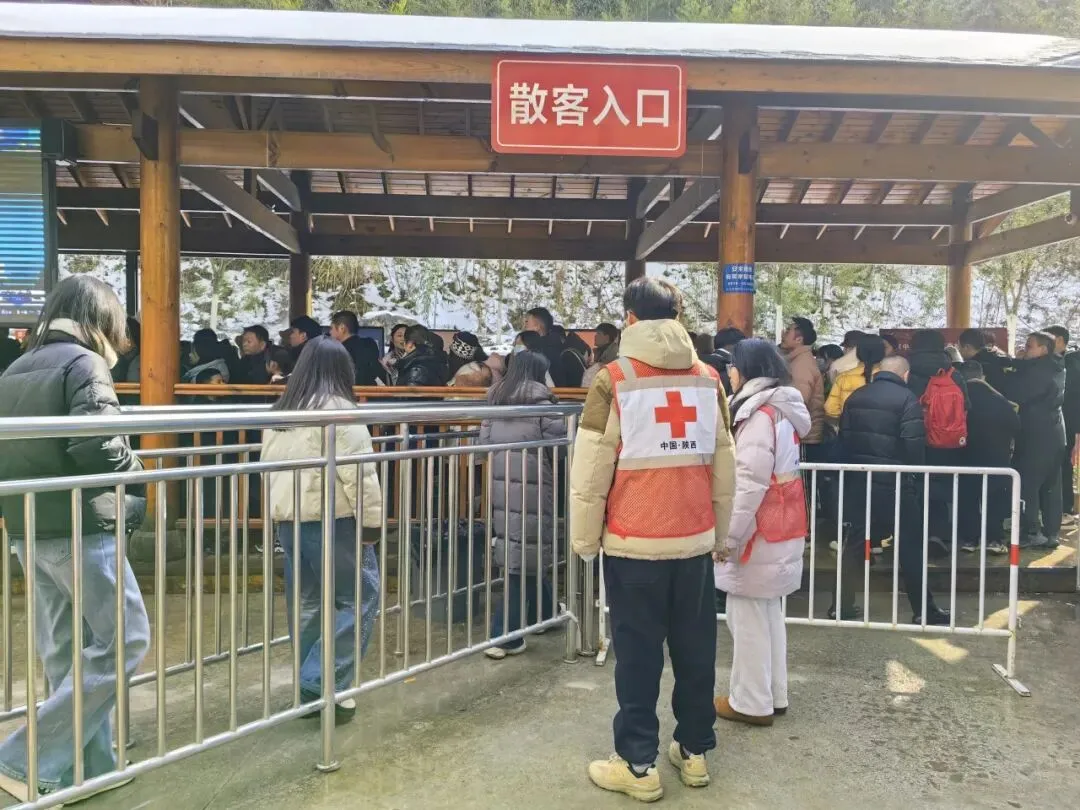 冬日龙头山银装素裹,客流涌动。为践行“人道、博爱、奉献”精神,南郑区红十字志愿服务队赴龙头山景区开展志愿服务活动,以“志愿红”筑牢景区安全屏障。