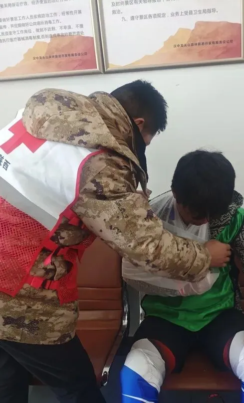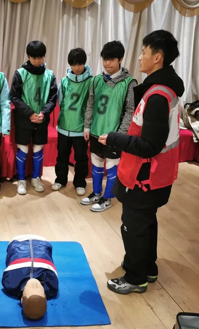 针对滑雪运动易发生危险,医疗服务小分队前往滑雪场医务救护点,为驻场训练体校生开展心肺复苏、气道异物梗阻等应急培训。期间,一名体校男孩滑雪时不慎摔伤胳膊,急救人员迅速进行检查、固定与包扎,并协同景区开辟绿色通道护送其下山就医。志愿服务中,处理滑雪扭伤、磕碰擦伤等外伤救助20余例,以专业救护为游客安全保驾护航。